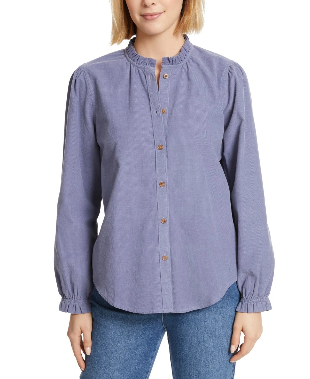 Gloria Vanderbilt Women's Cotton Ruffle-Trim Blouse Blue Size M