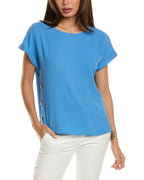 V-neck; pulls on. Rhinestone throughout. Lurex sweater-knit top. Allover rhinestones.