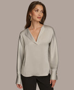 A sweeping asymmetrical hem draws the eye on this striking dress by GUESS.