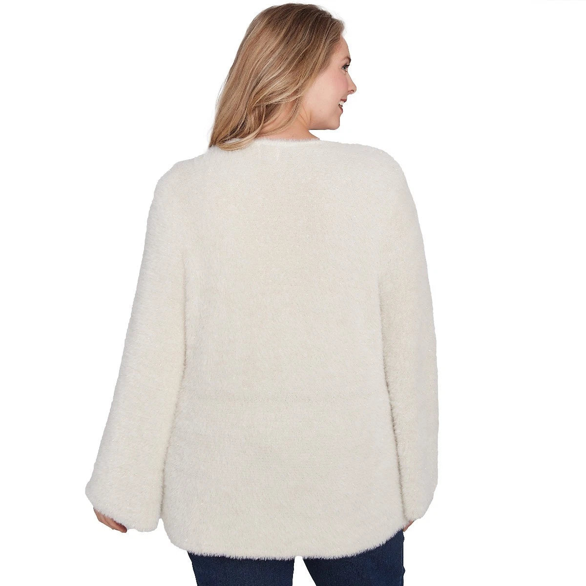 HEARTS OF PALM Plus Size 1X Red-Y To Shine Eyelash V-Neck Sweater Ivory Gold $62
