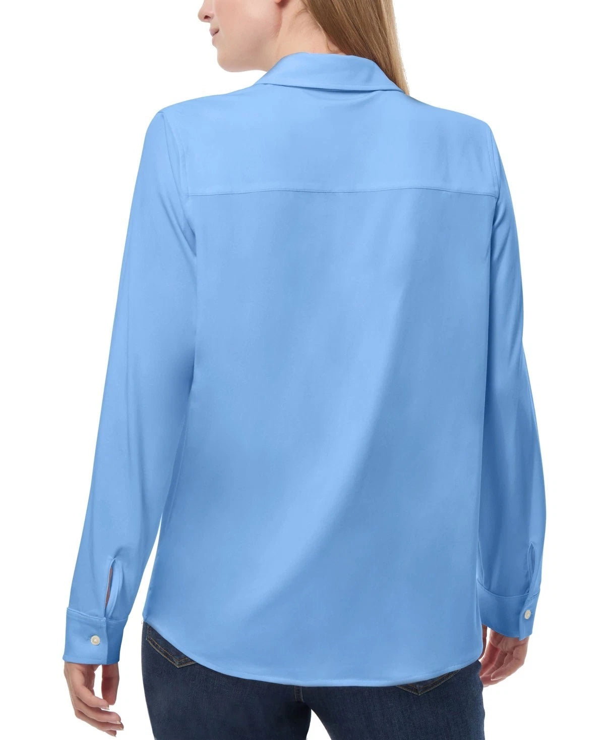 Jones New York Petite Collared Button-Front Shirt Blue Size PM MSRP $80