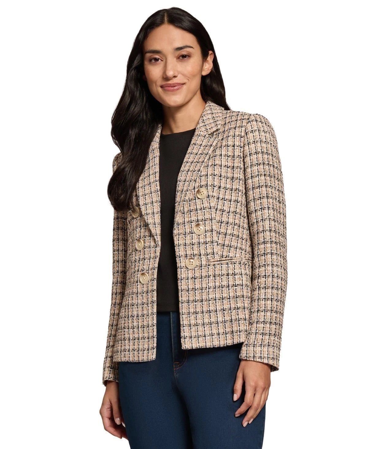 Jones New York Women's Faux-Double Breasted Plaid Jacket Beige Size XL MSRP $140