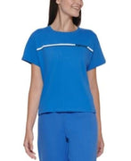 A stylish split-back detail adds movement and flow to this french terry athleisure top from Josie Natori.