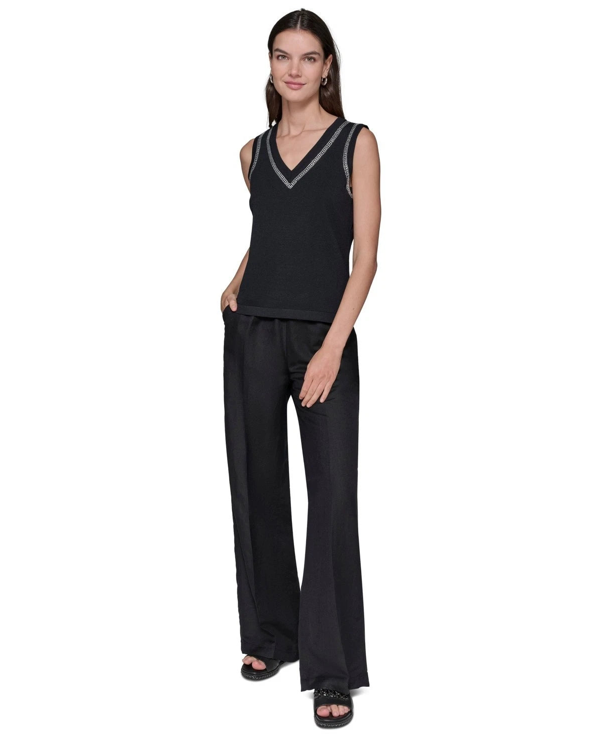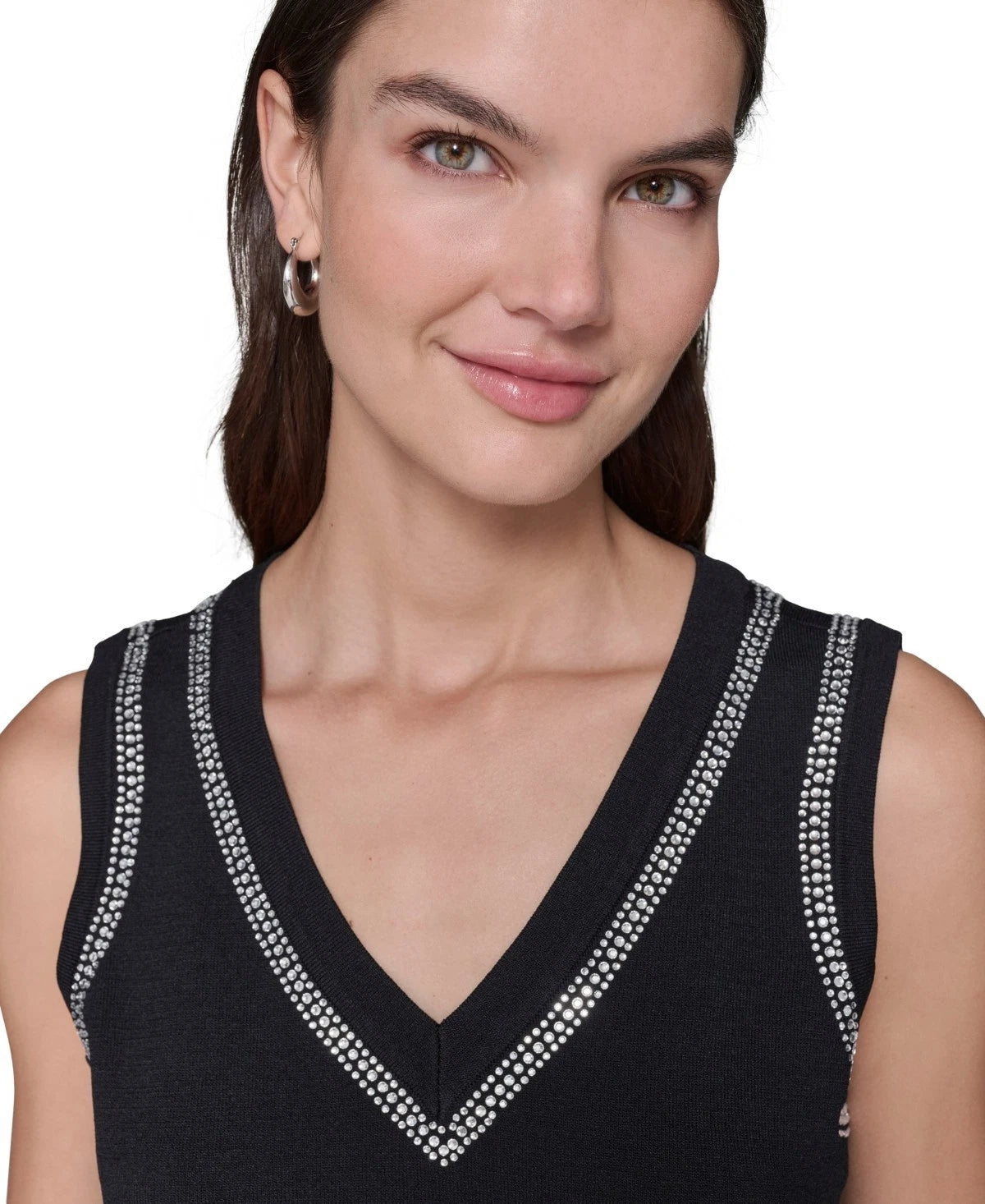 KARL LAGERFELD PARIS Embellished V-Neck Sleeveless Sweater Black Size XL MSRP$89