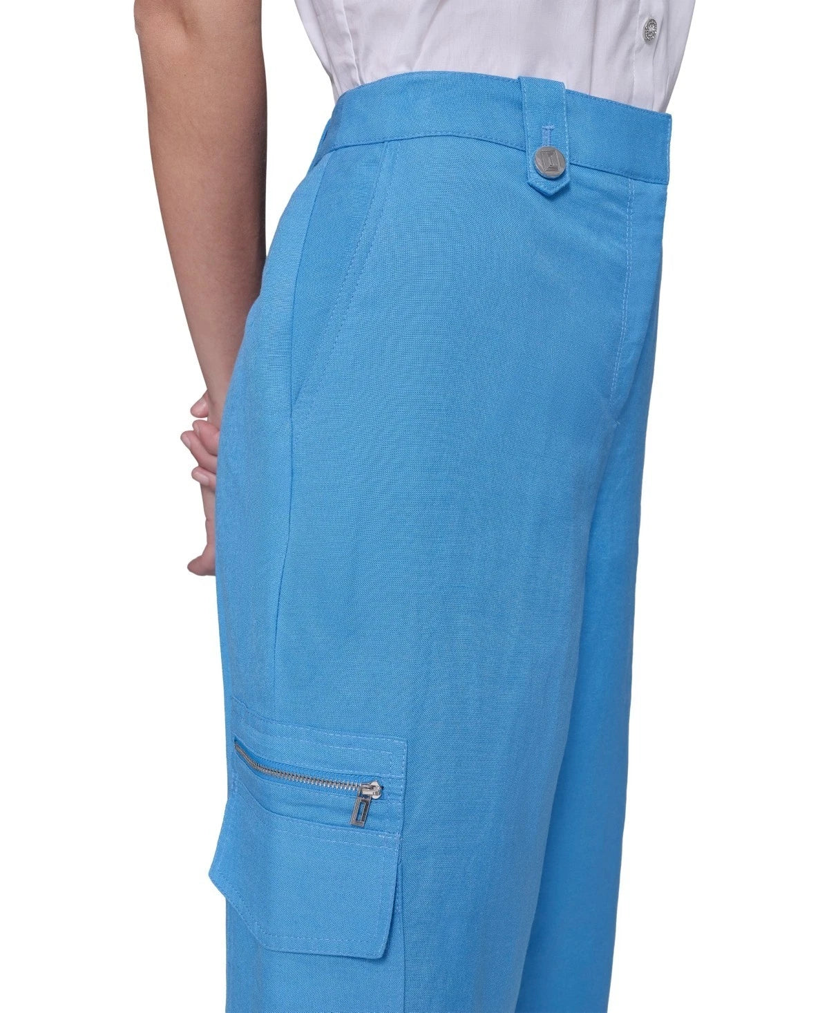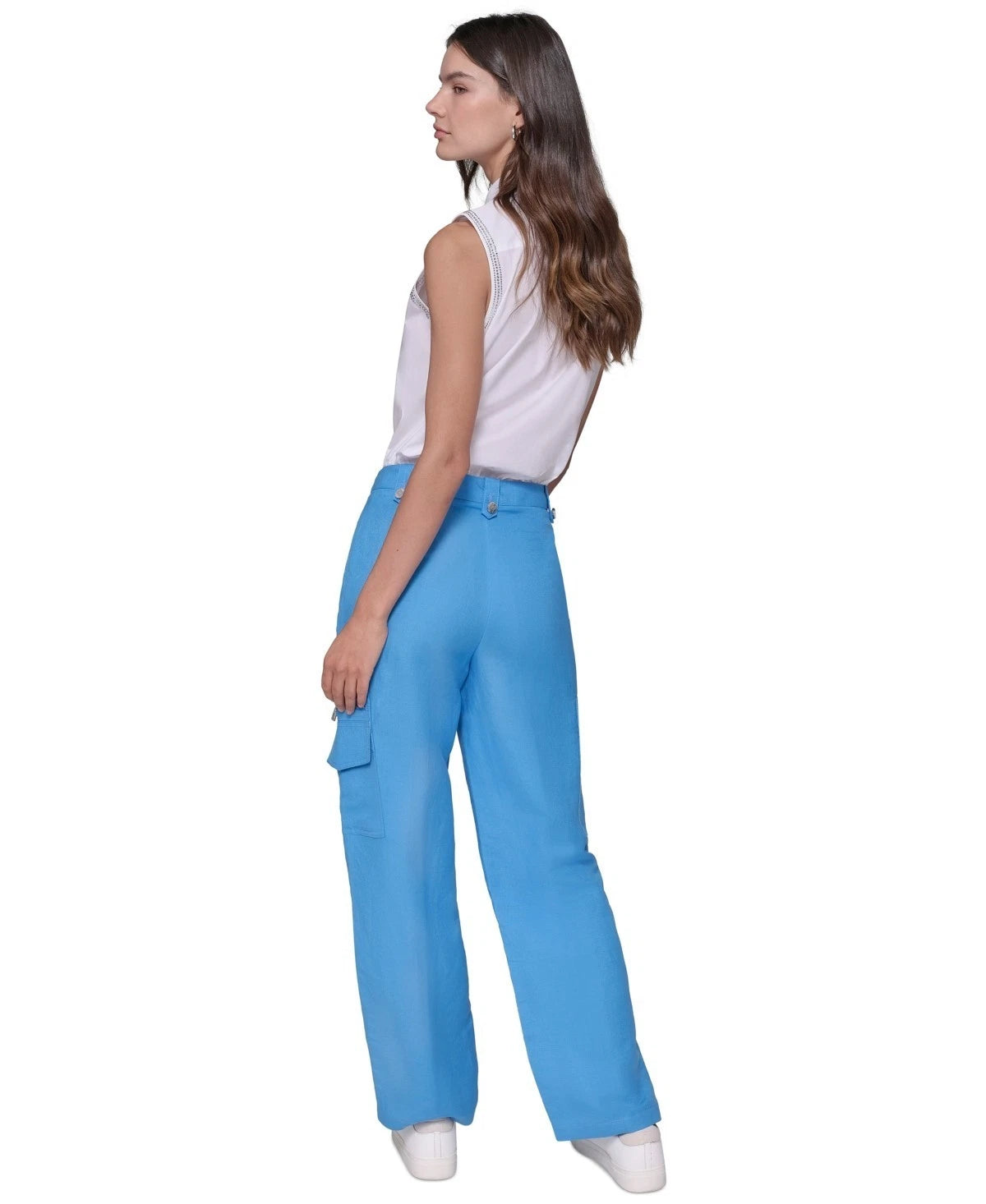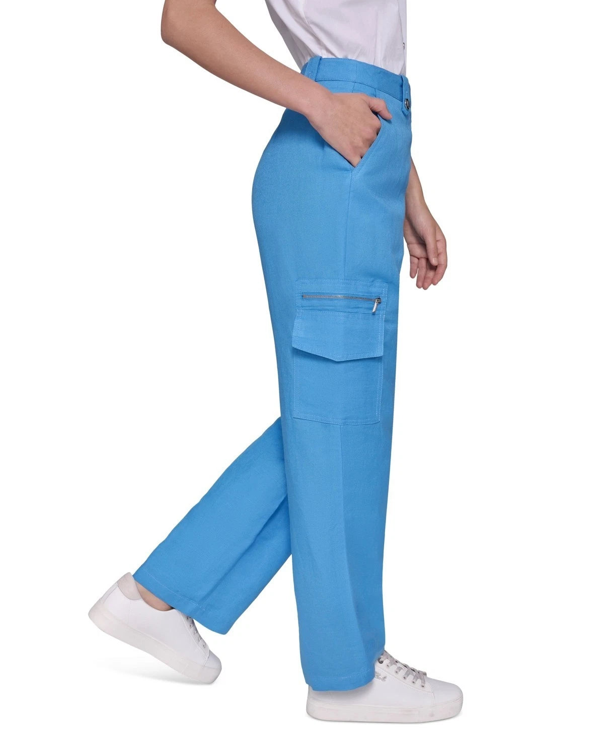 KARL LAGERFELD PARIS Linen-Blend Straight-Leg Cargo Pants Blue Size 10 MSRP $119