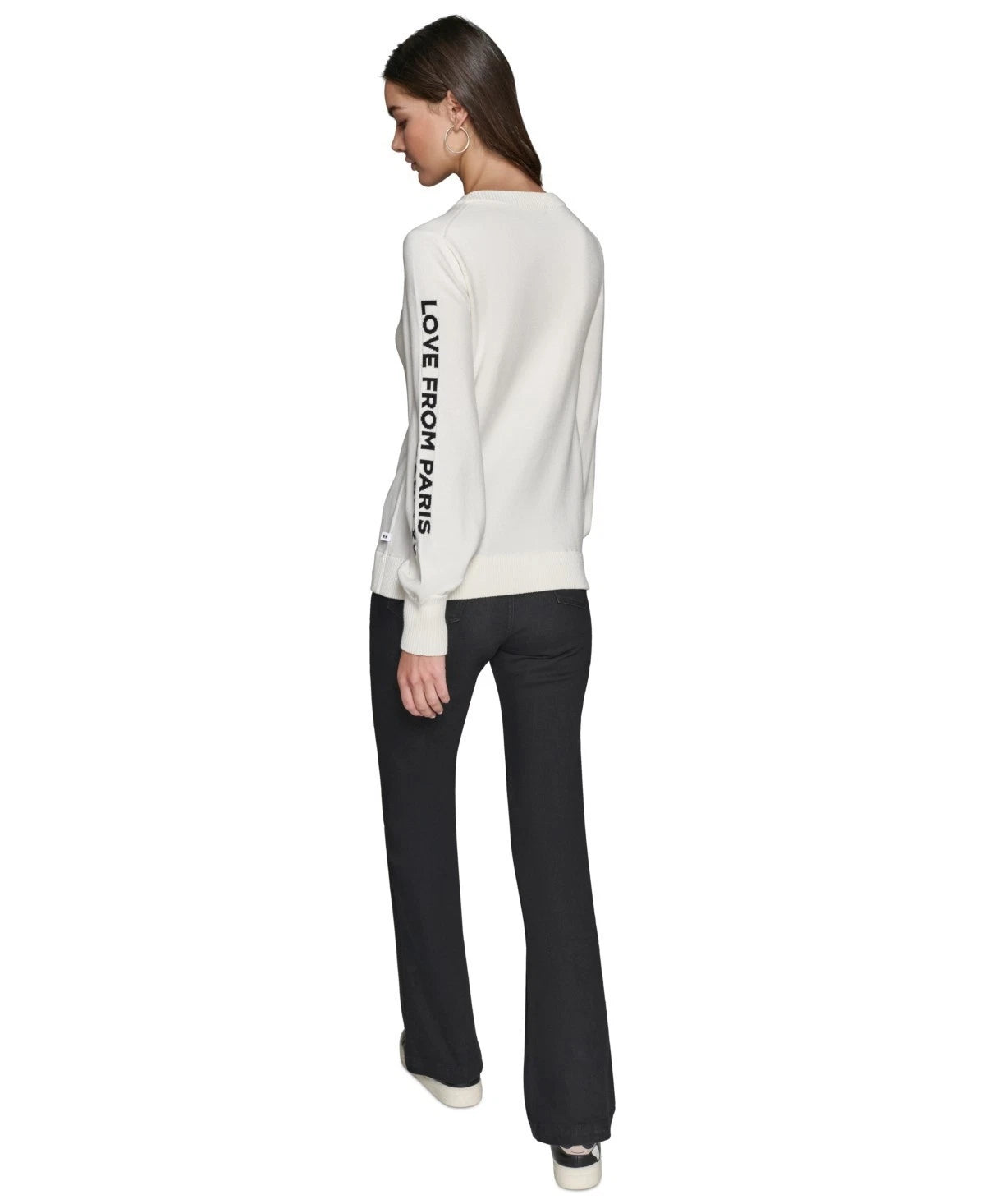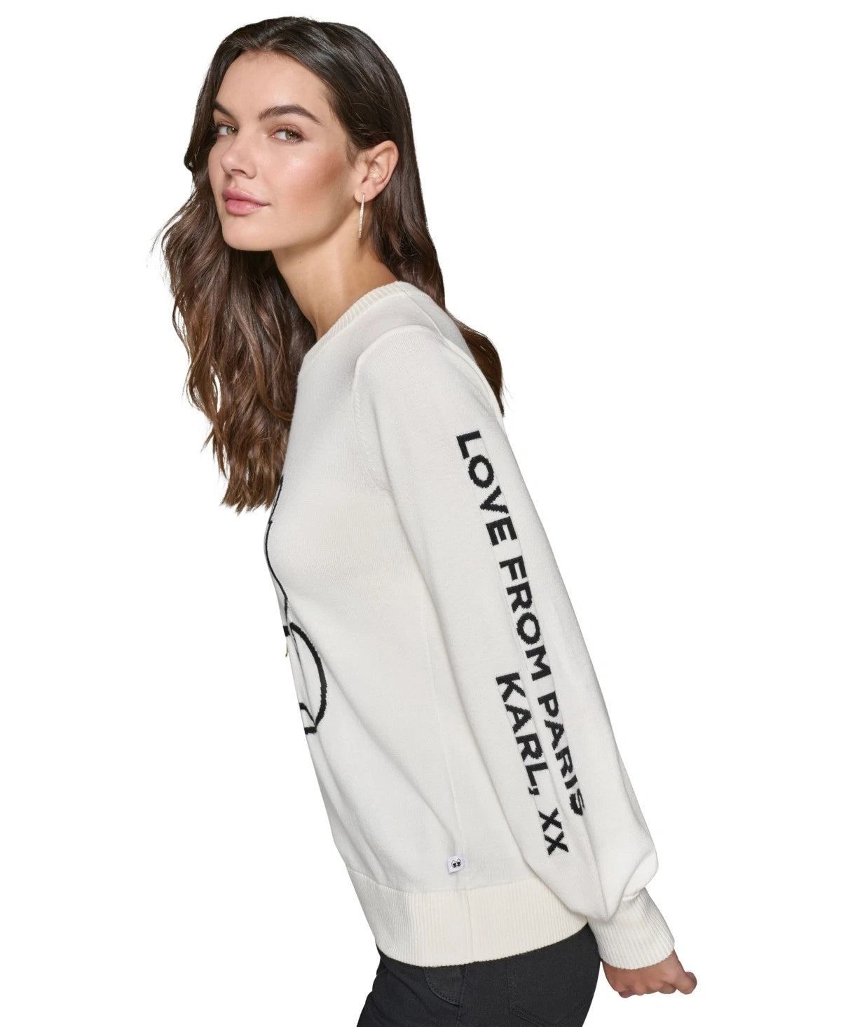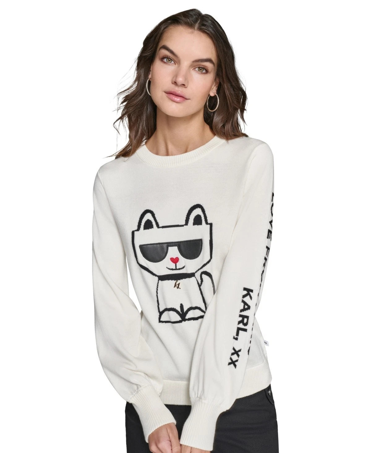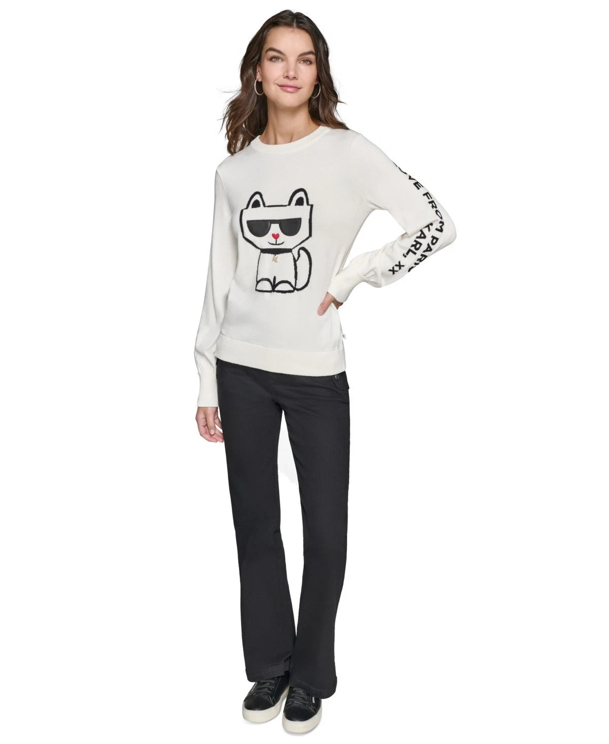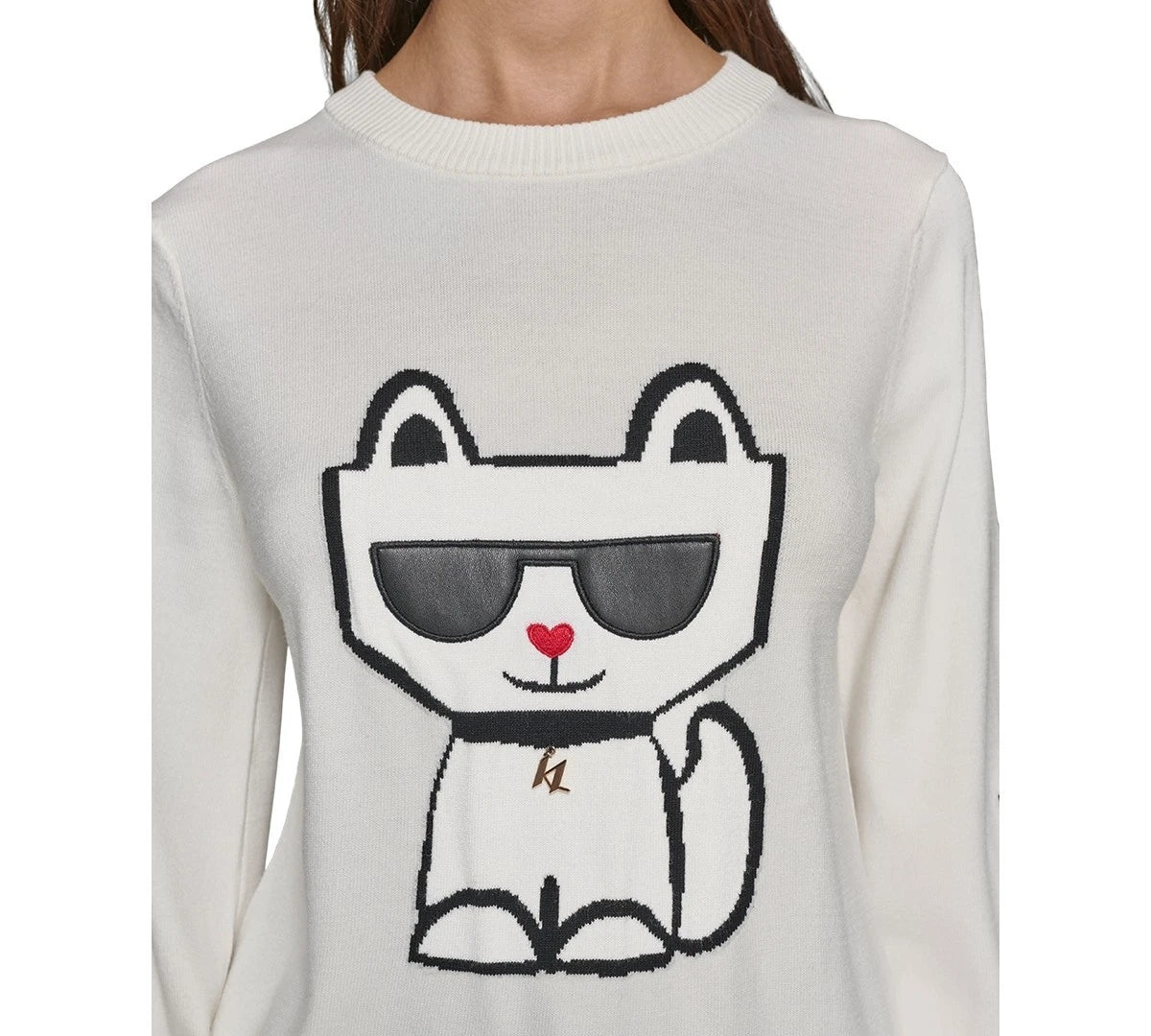 KARL LAGERFELD PARIS Women's Choupette Crewneck Sweater Ivory Size M MSRP $99