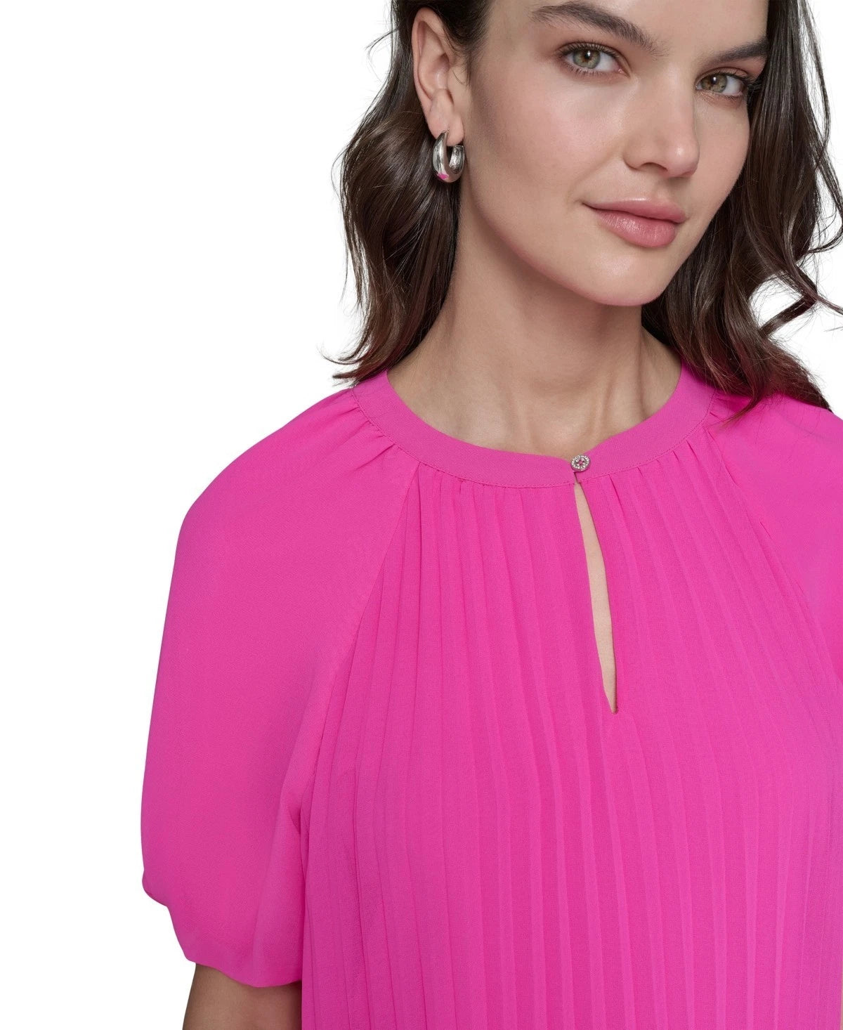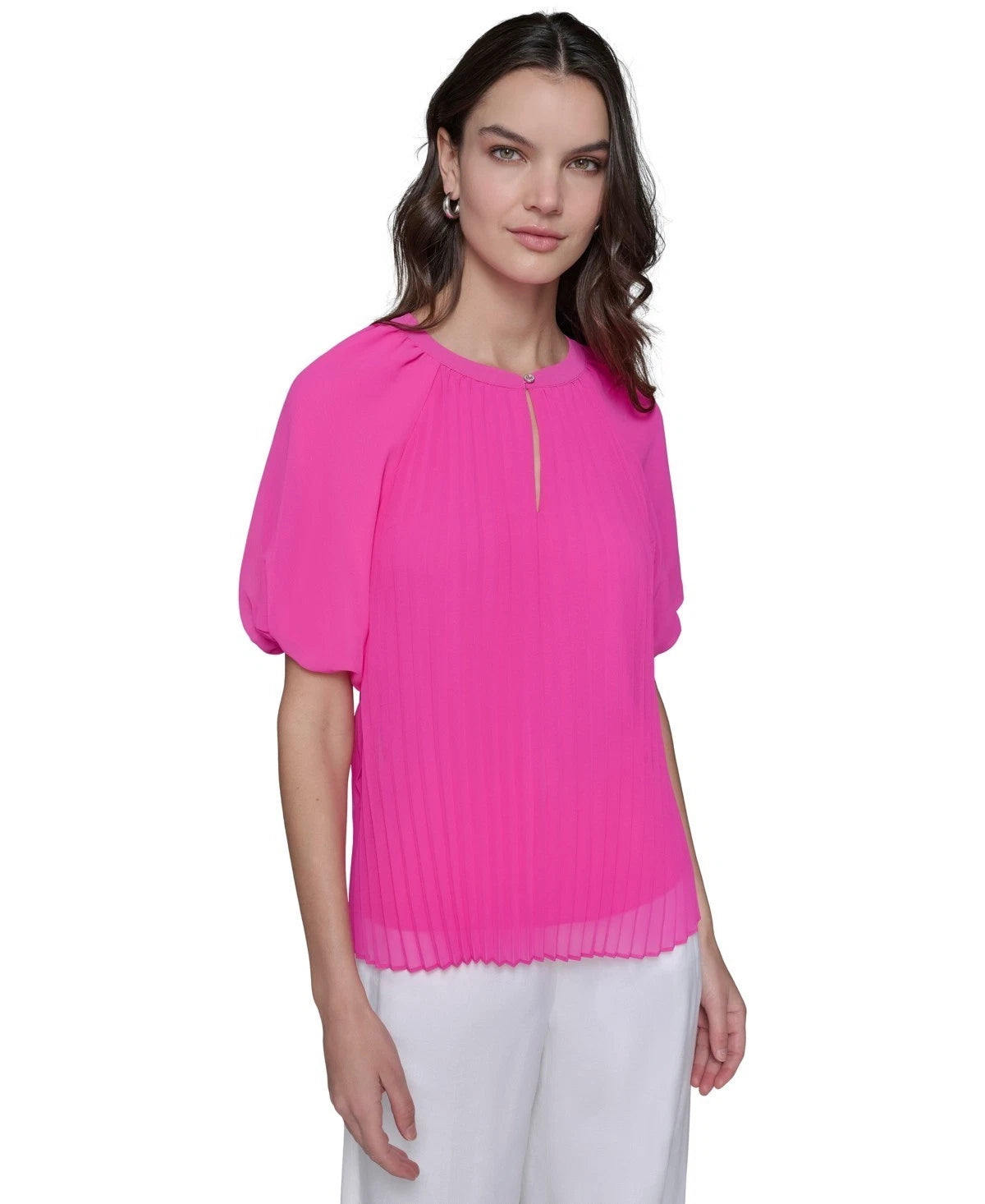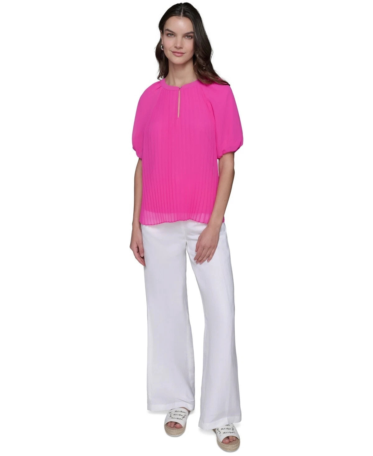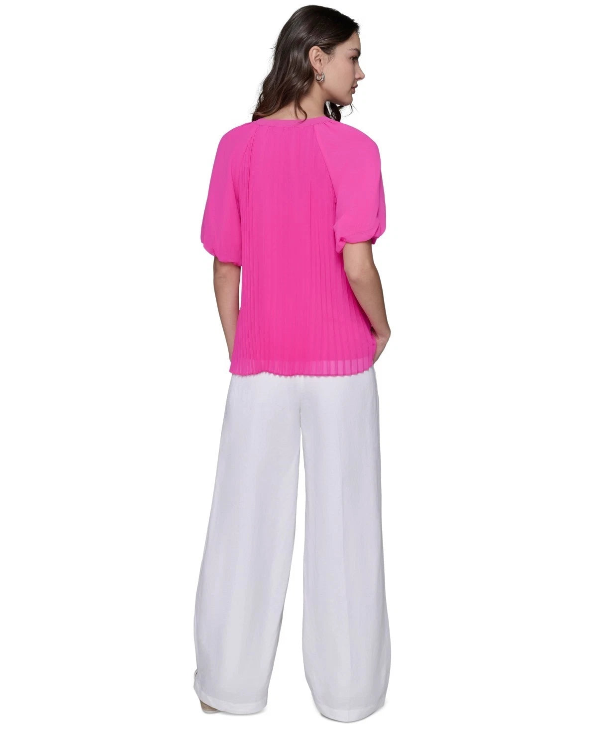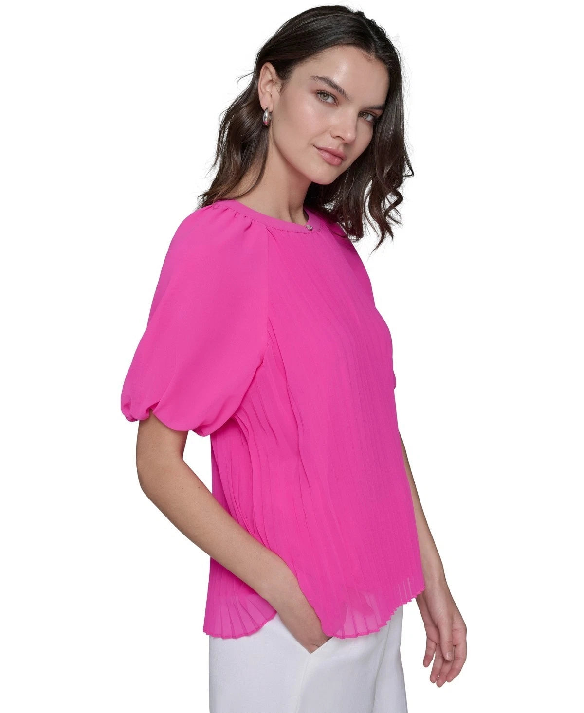 KARL LAGERFELD PARIS Women's Puff Sleeve Pleated Top Pink Size XS MSRP $99