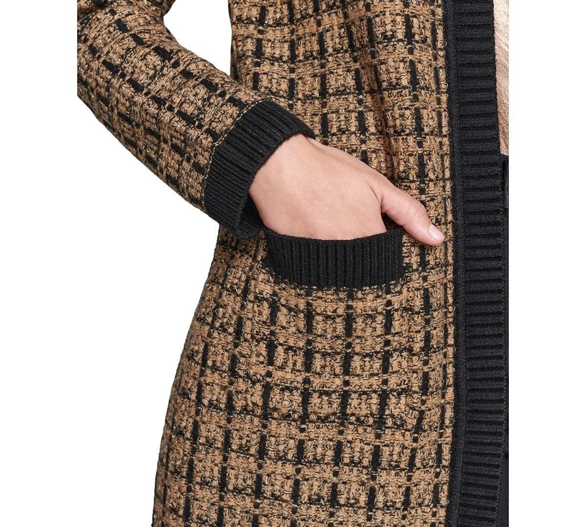 KARL LAGERFELD PARIS Women's Tweed Duster Cardigan Black XS MSRP $169