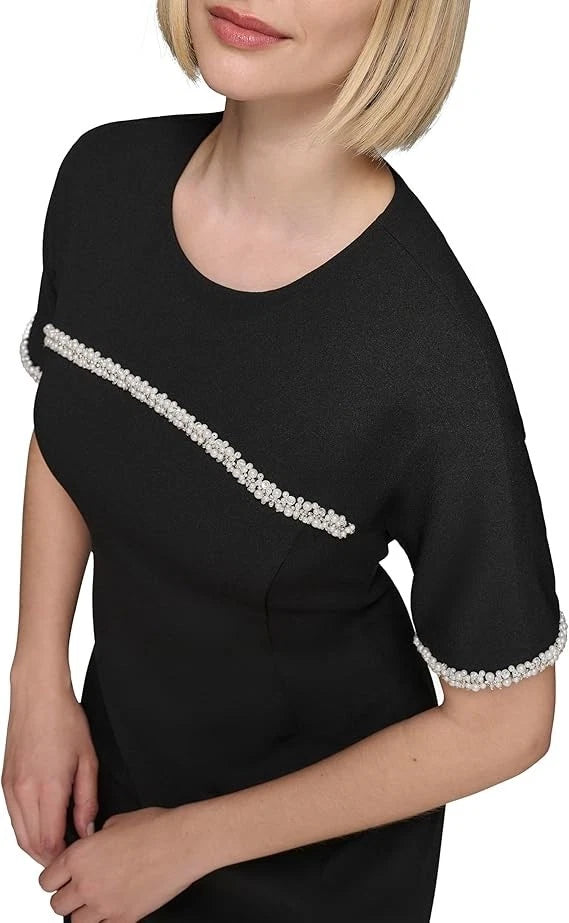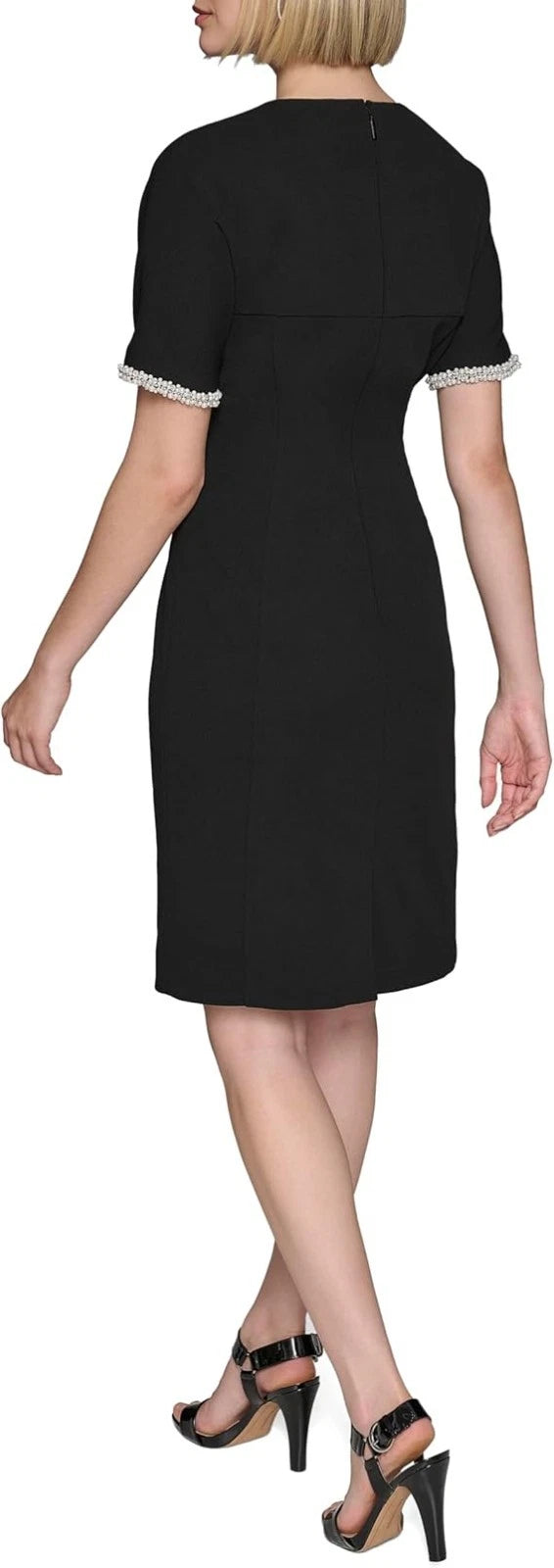 KARL LAGERFELD Pearl Trim Short Sleeve Round Neck Sheath Dress Black Size 6 $168