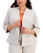 For a professional look with modern polish, reach for Karl Lagerfeld's flattering one-button blazer, a reverse lapel design with eye-catching contrast trim.