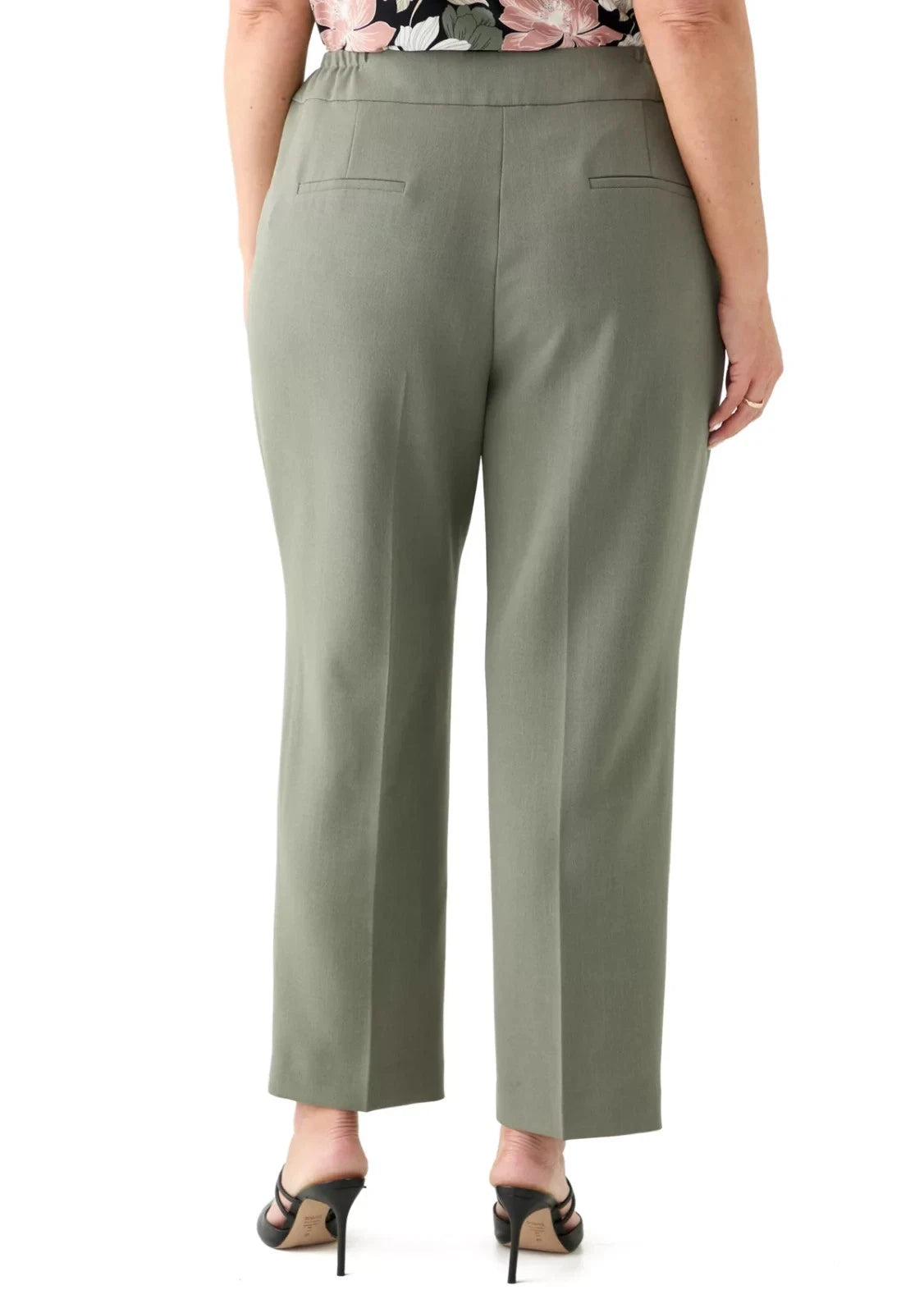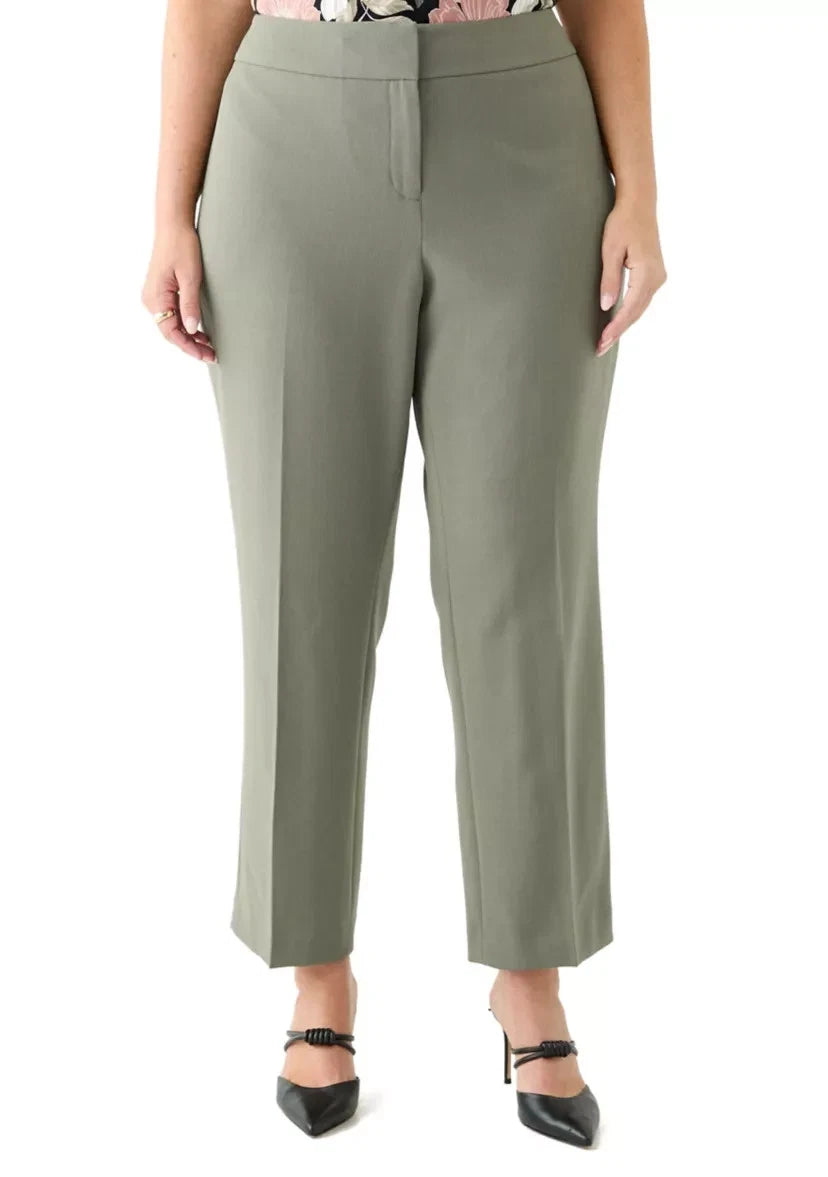 Kasper Plus Size 16 Fly Front Slim Pants Green MSRP $89