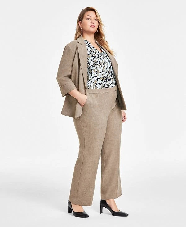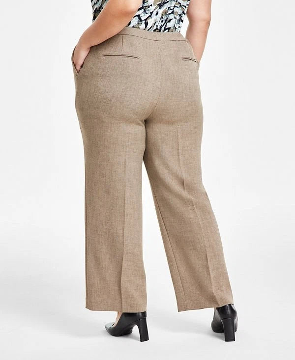 Kasper Plus Size 18W Extended-Tab Straight-Leg Pants Brown Gray MSRP $89