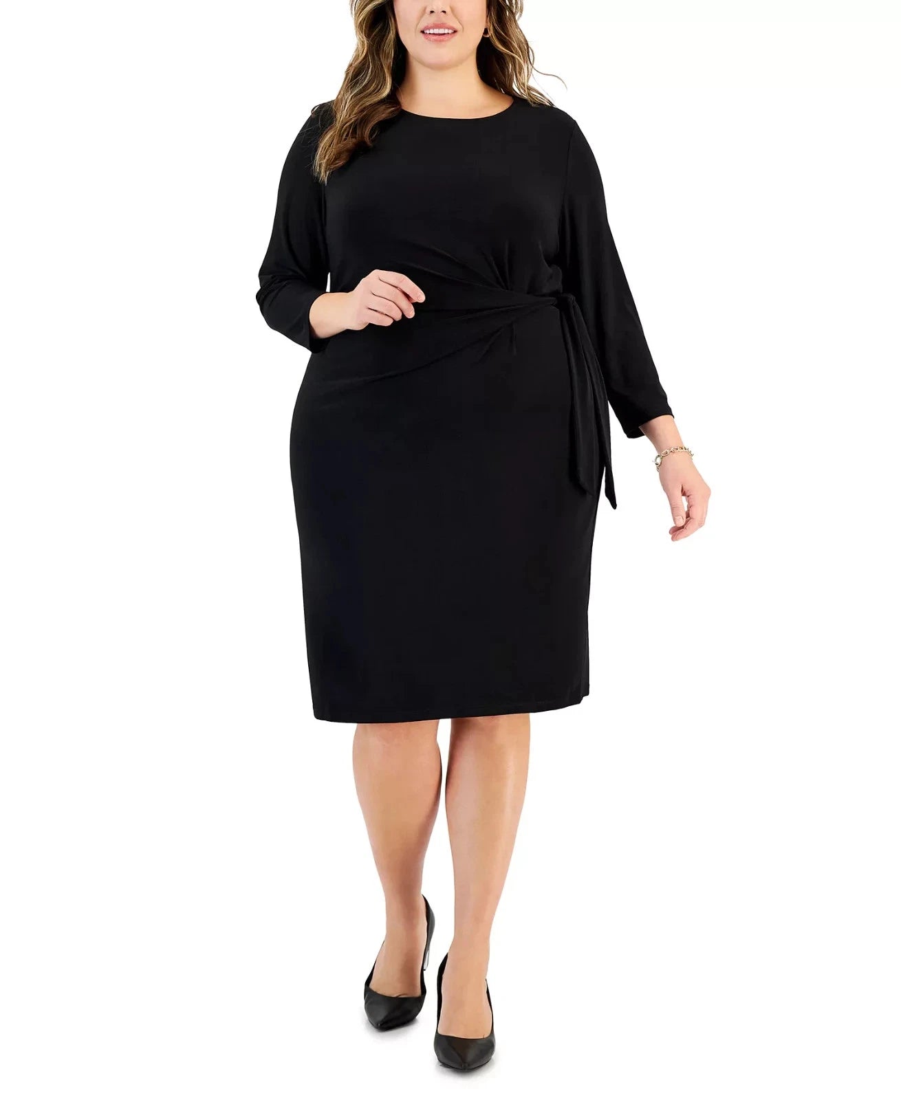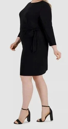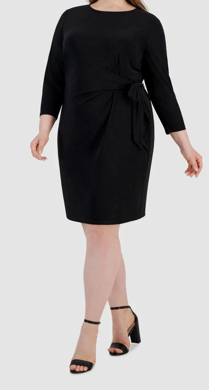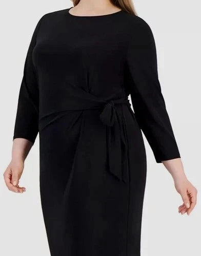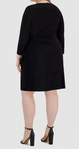 Kasper Plus Size 3X Anise Faux-Wrap 3/4-Sleeve Dress Black MSRP $99