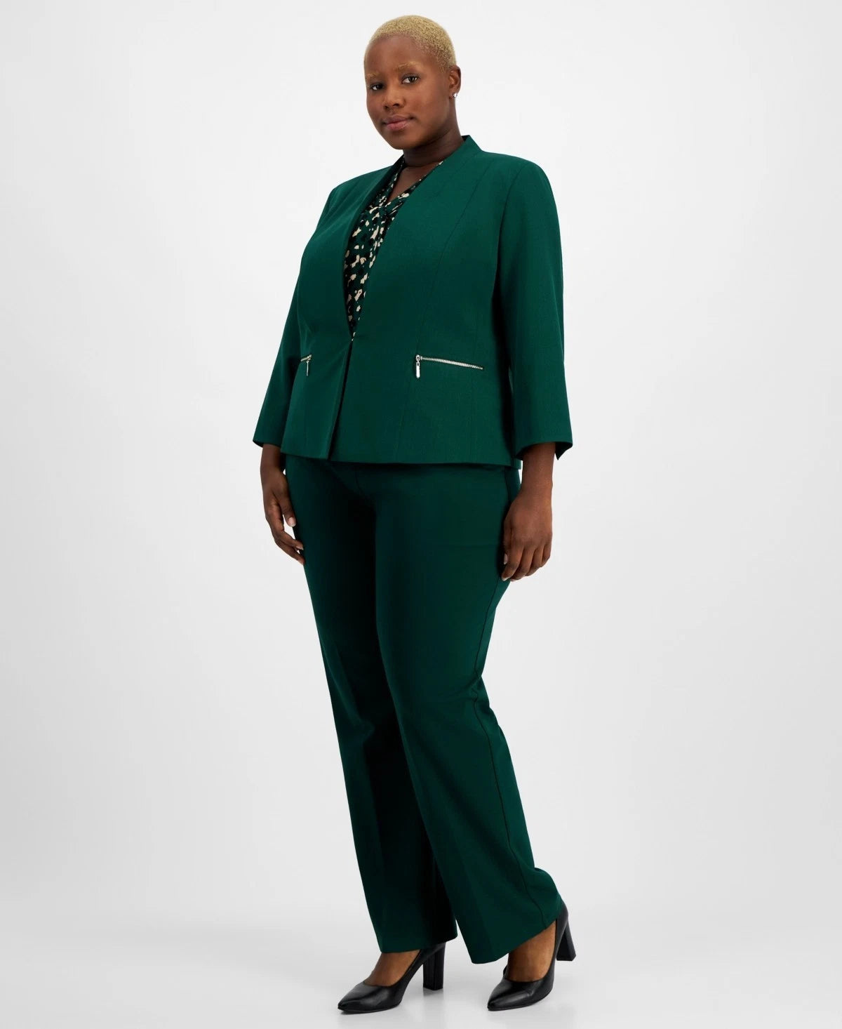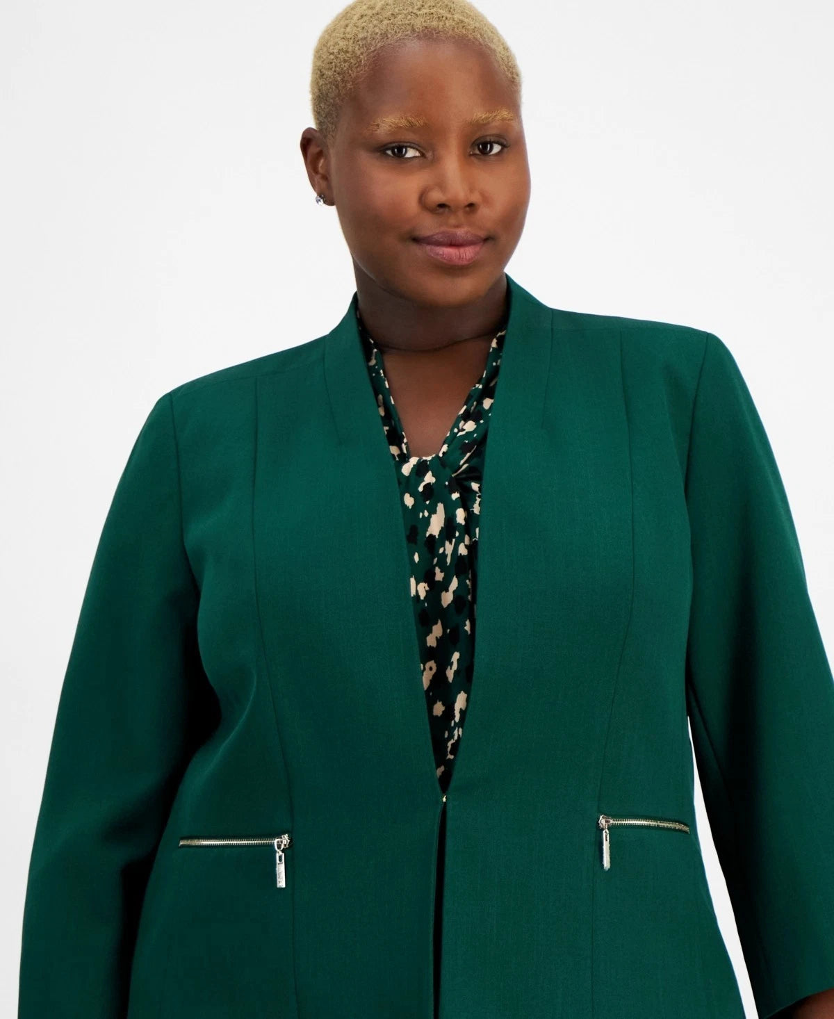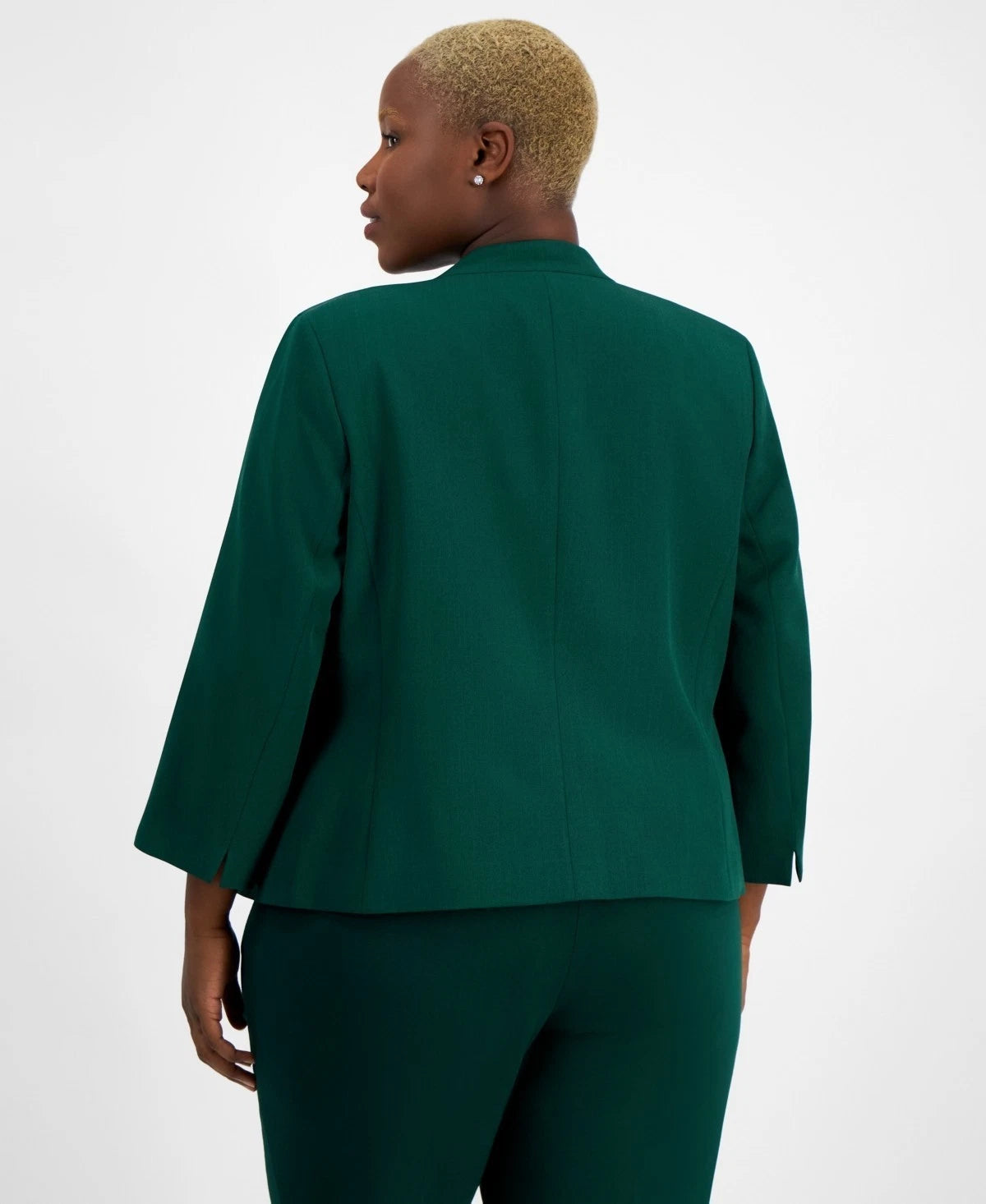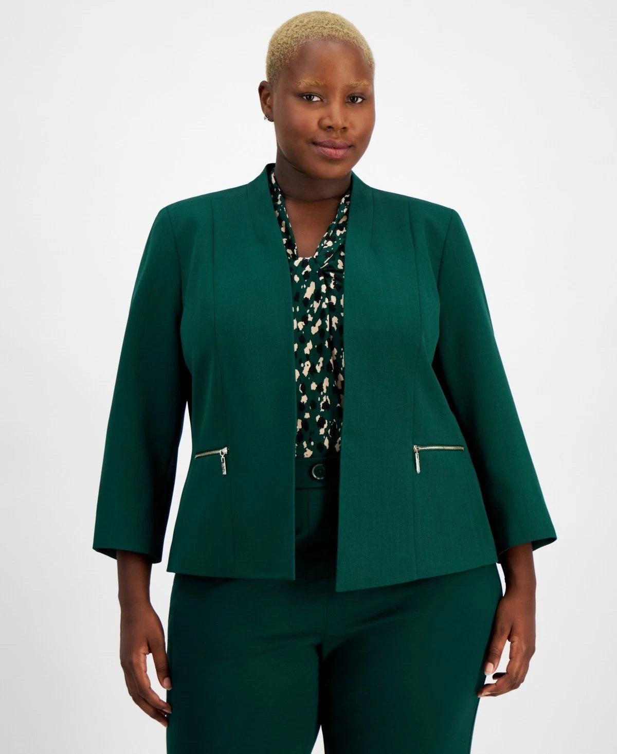 Kasper Plus Size Kiss-Front Zippered-Pocket Blazer Green Size 24W MSRP $129