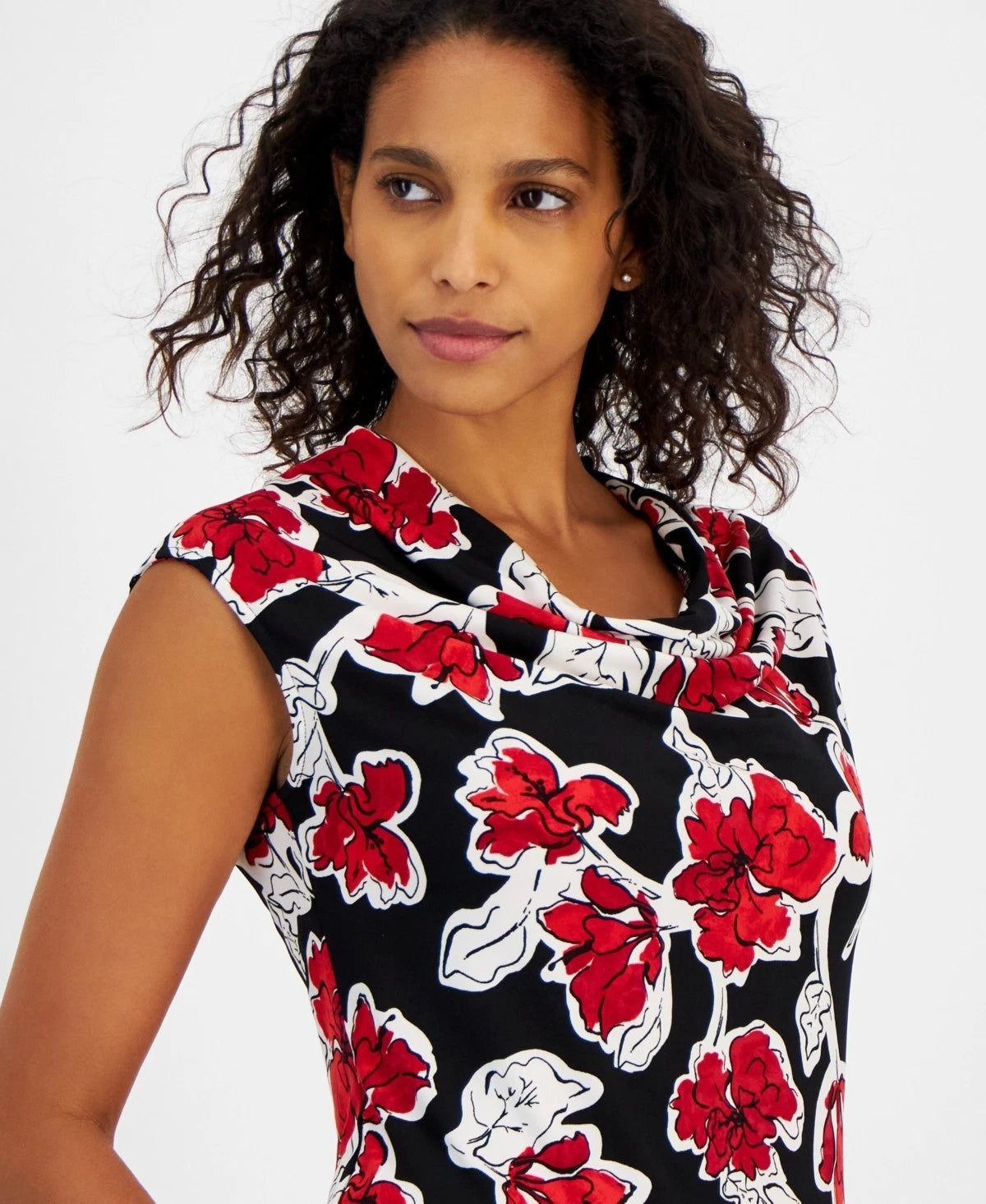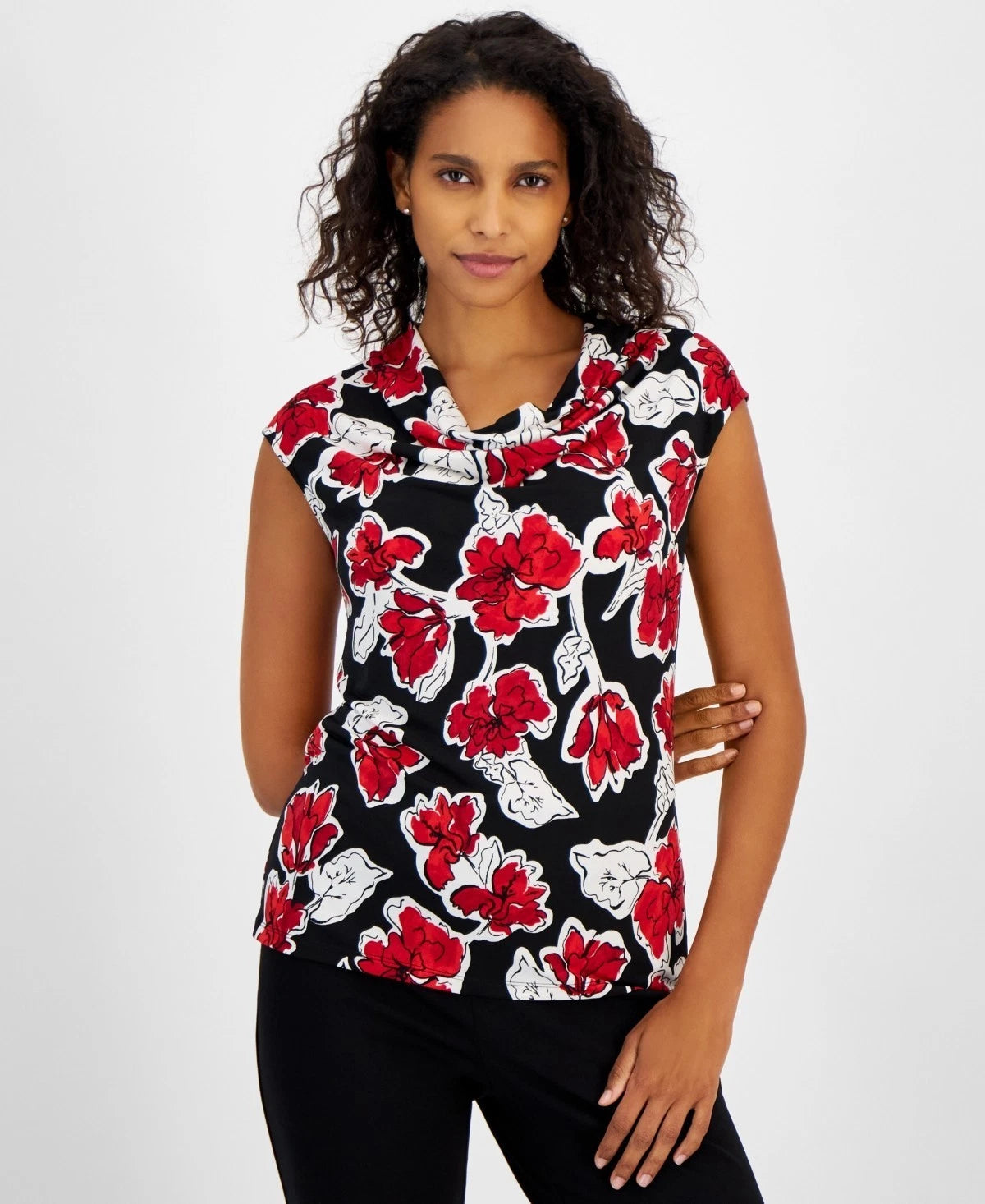 Kasper Women's Floral-Print Cowl-Neck Sleeveless Petite Size PM Black Red