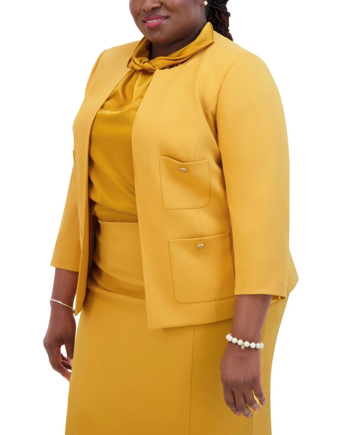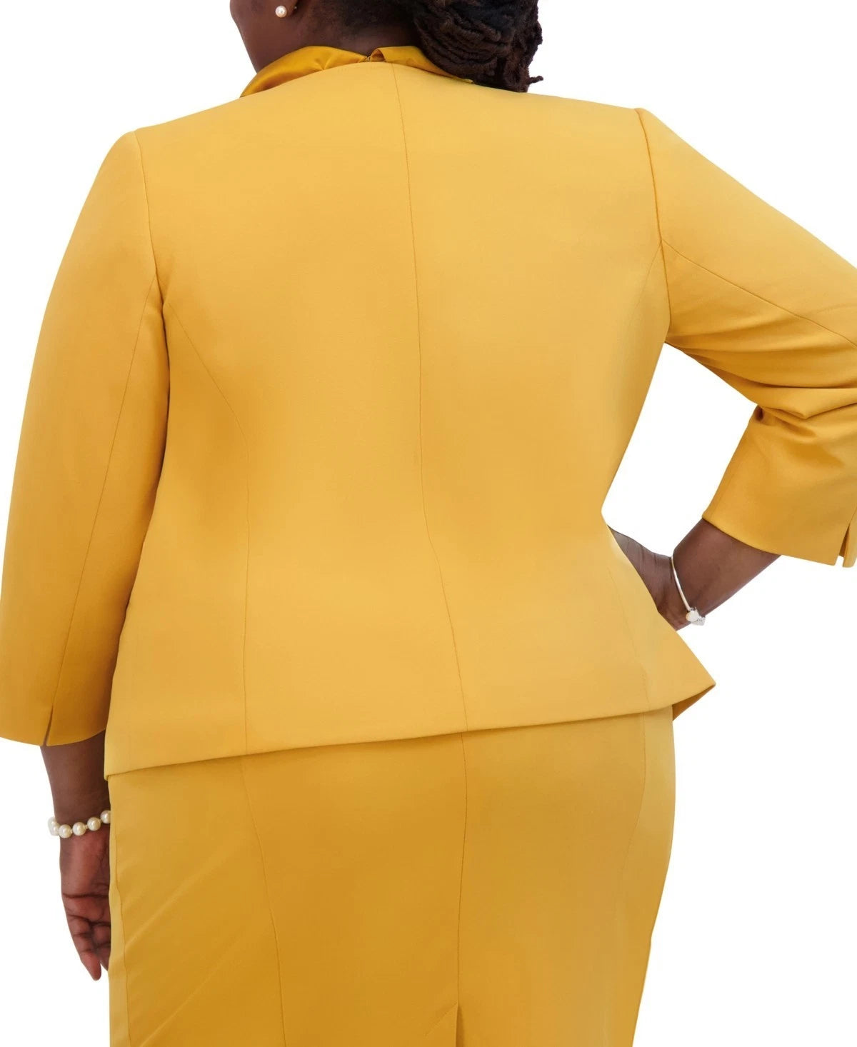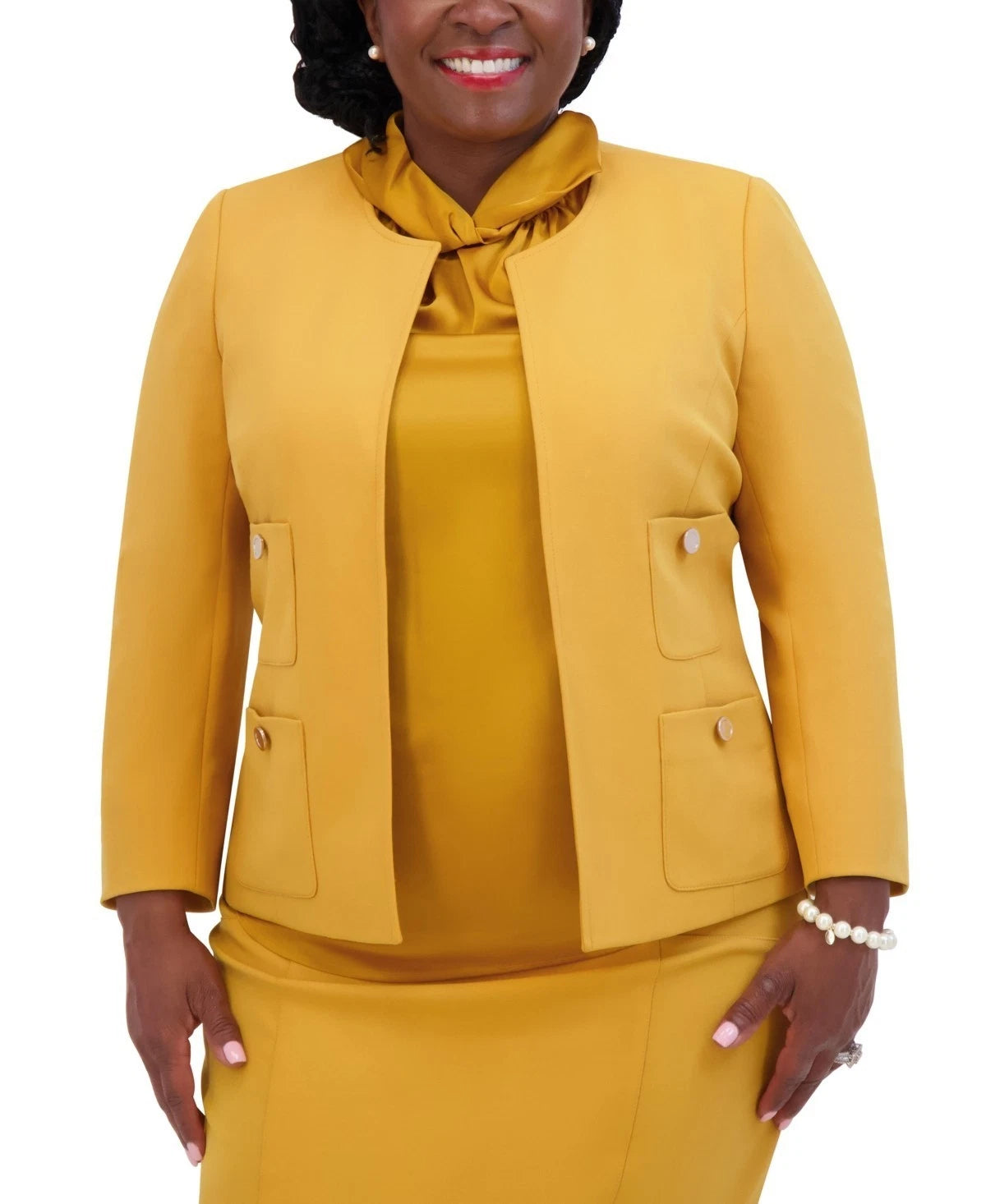 Kasper Women's Open-Front Round-Neck Blazer Yellow Mustard Size L MSRP $129