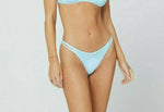 Shirred-look pucker-fabric bikini top featuring henly button detail at front