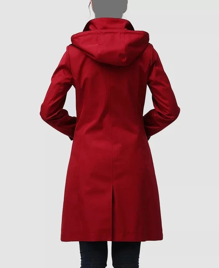 kimi + kai Women's Eeva Water-Resistant Hooded Trench Coat Brick Red Size L $188