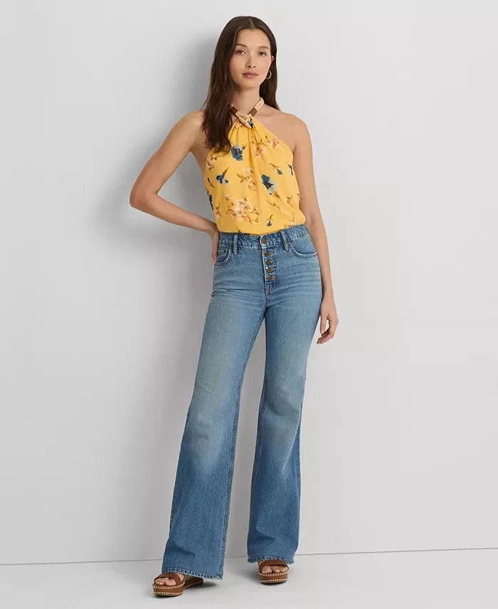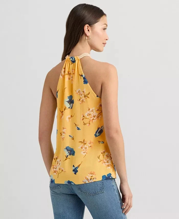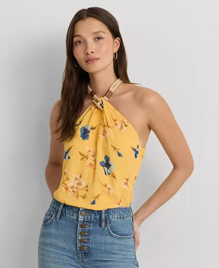 Lauren Ralph Lauren Floral Crinkle Georgette Halter Top Yellow Size XL MSRP $125