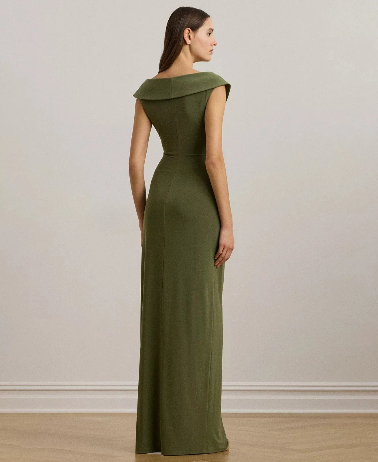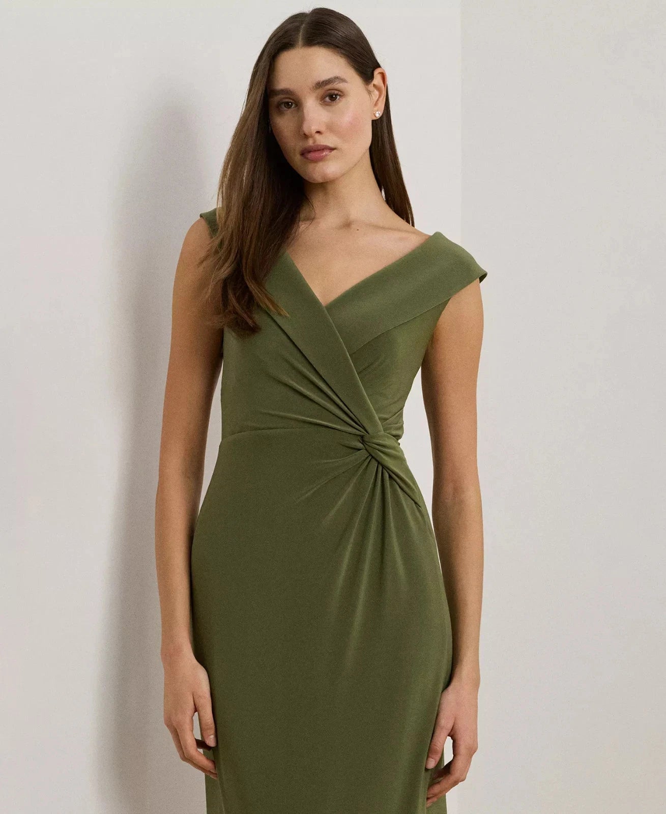 Lauren Ralph Lauren Jersey Off-the-Shoulder Gown Olive Green Size 18 MSRP $225