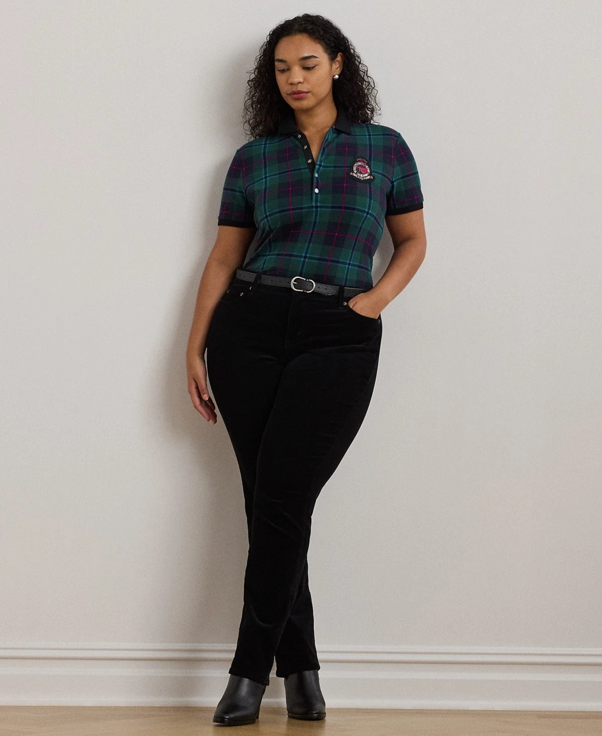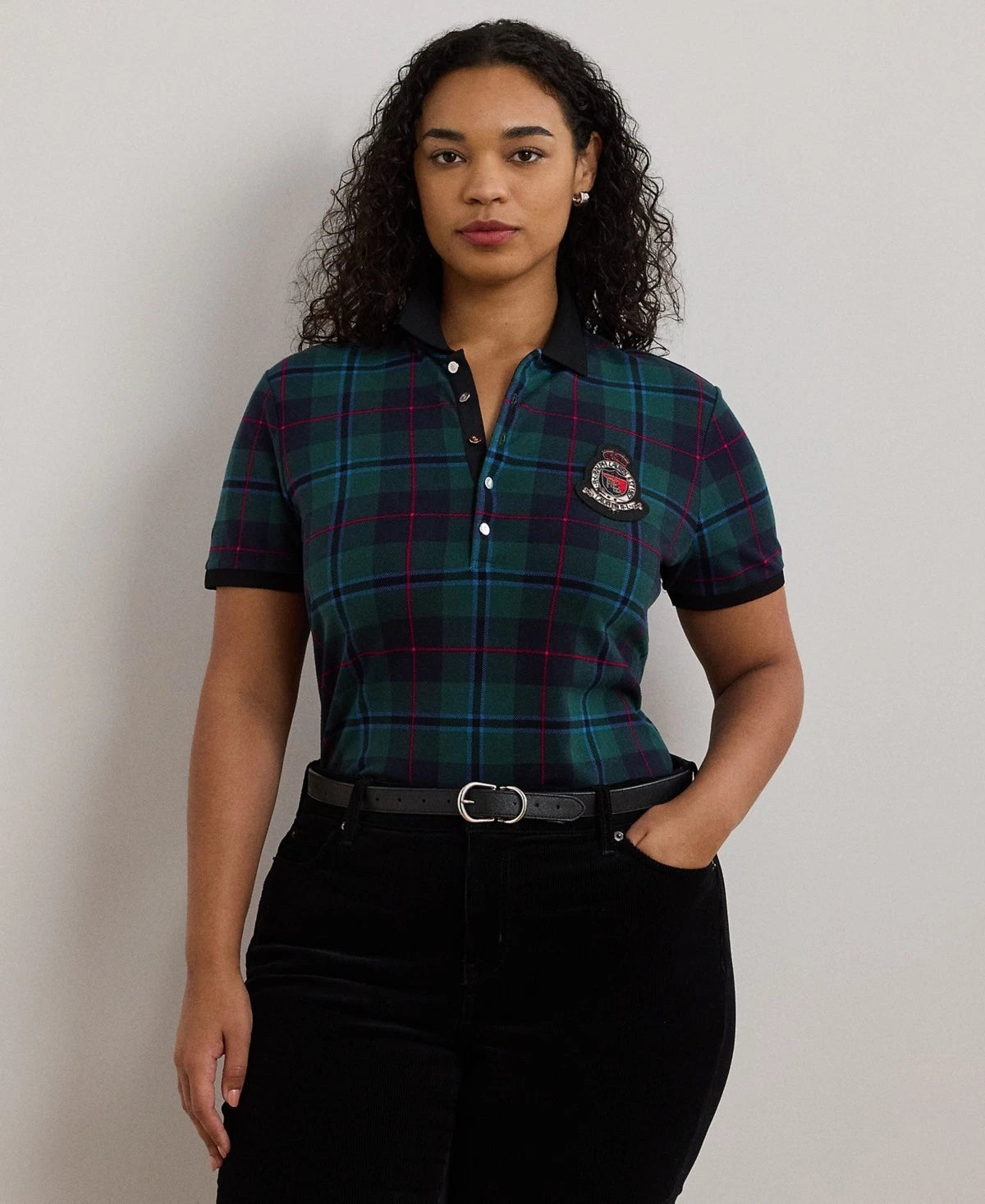 Synonymous with Lauren Ralph Lauren style, this Polo shirt is rendered in cotton piqué with a hint of stretch for a soft hand feel. Decorated with Lauren's beaded crest at the chest, this version showcases a festive Black Watch plaid pattern.