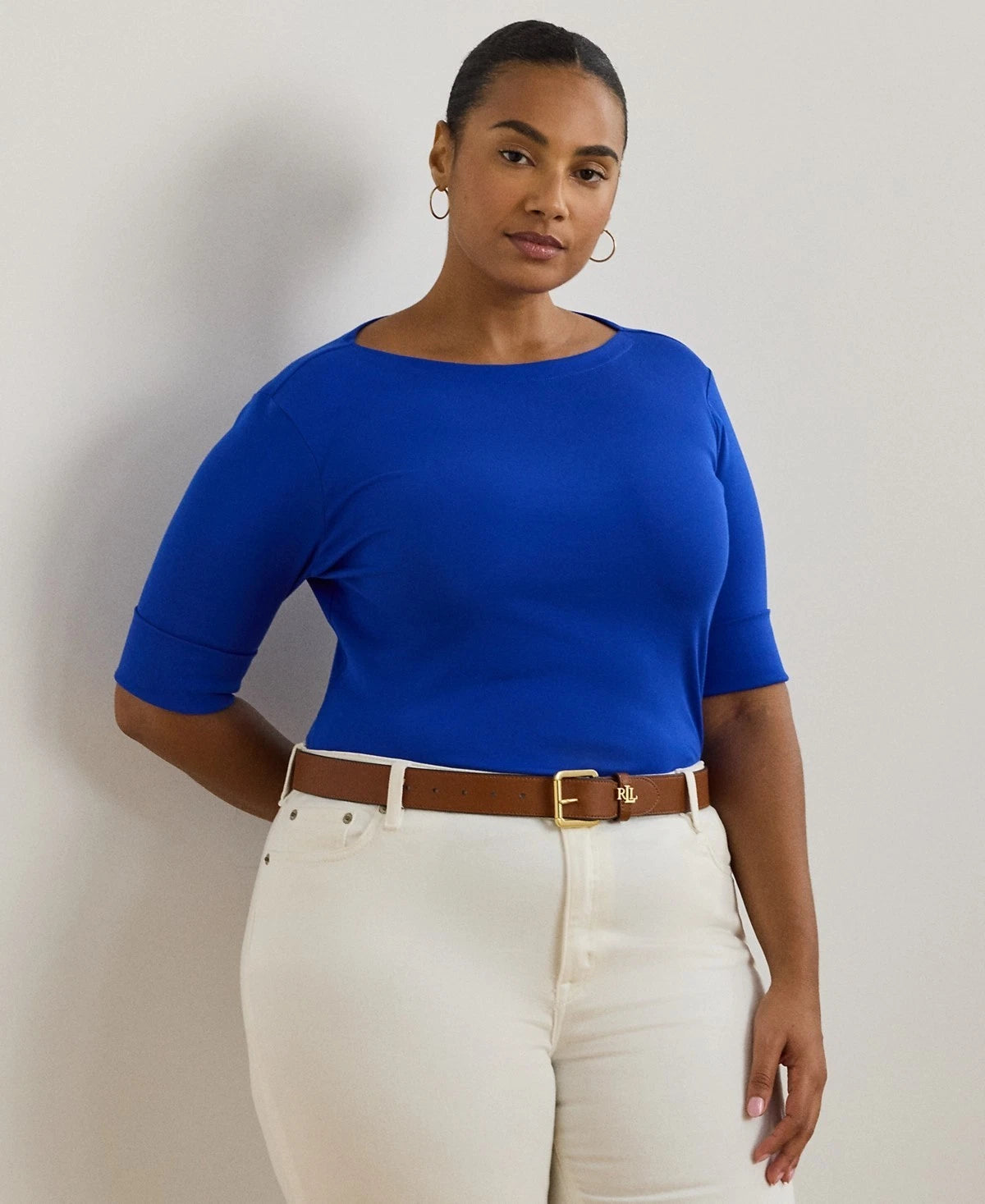 Lauren Ralph Lauren Plus Size 3X Stretch Cotton Boatneck Tee Blue