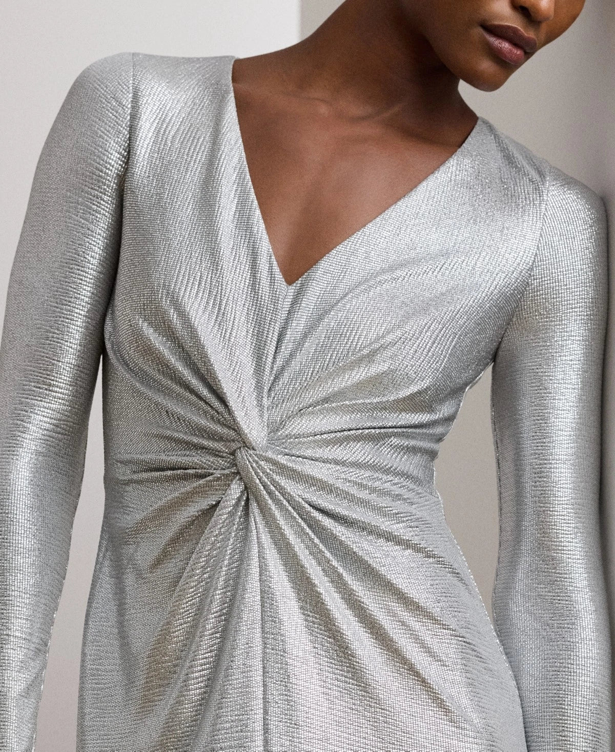 Lauren Ralph Lauren Women Metallic Knit Twist-Front Gown Silver Size 16 MSRP$295