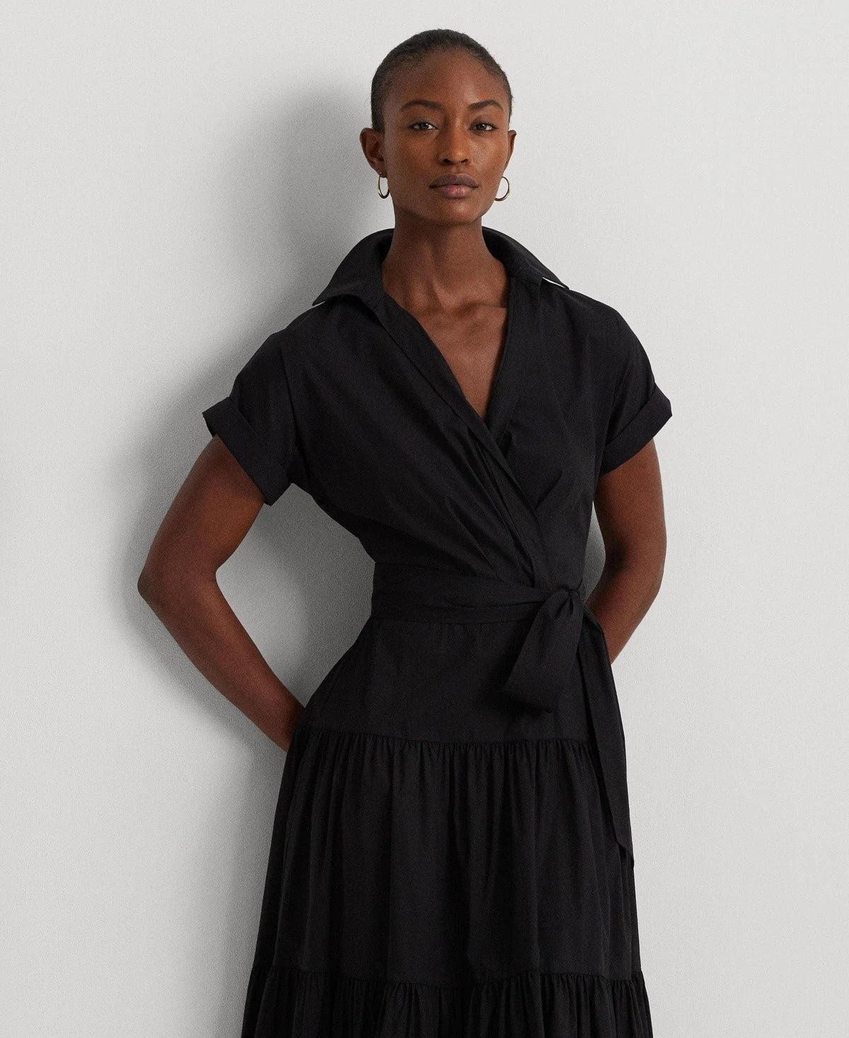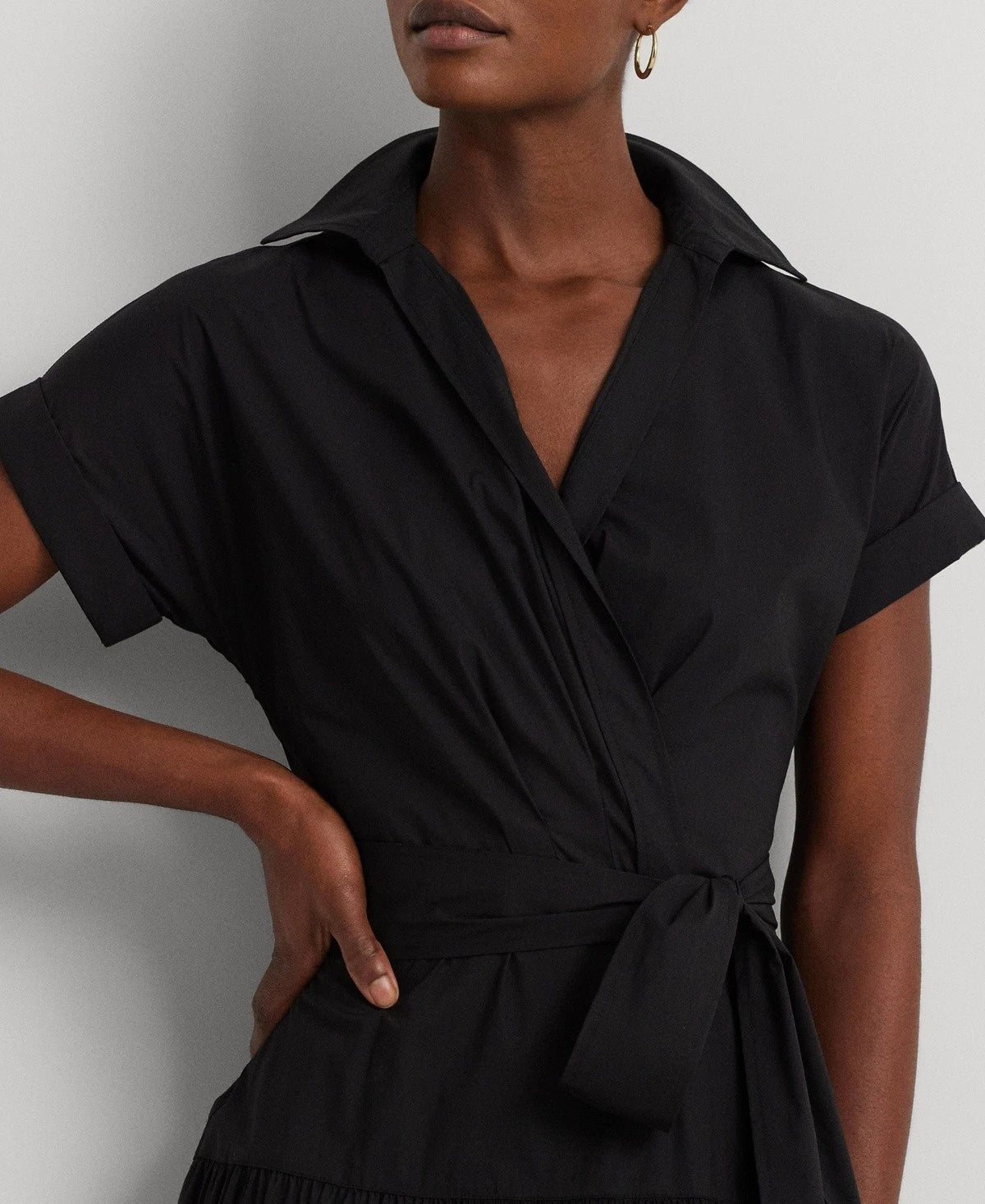 Lauren Ralph Lauren Women's Belted Cotton-Blend Tiered Dress Black Size 16 $185