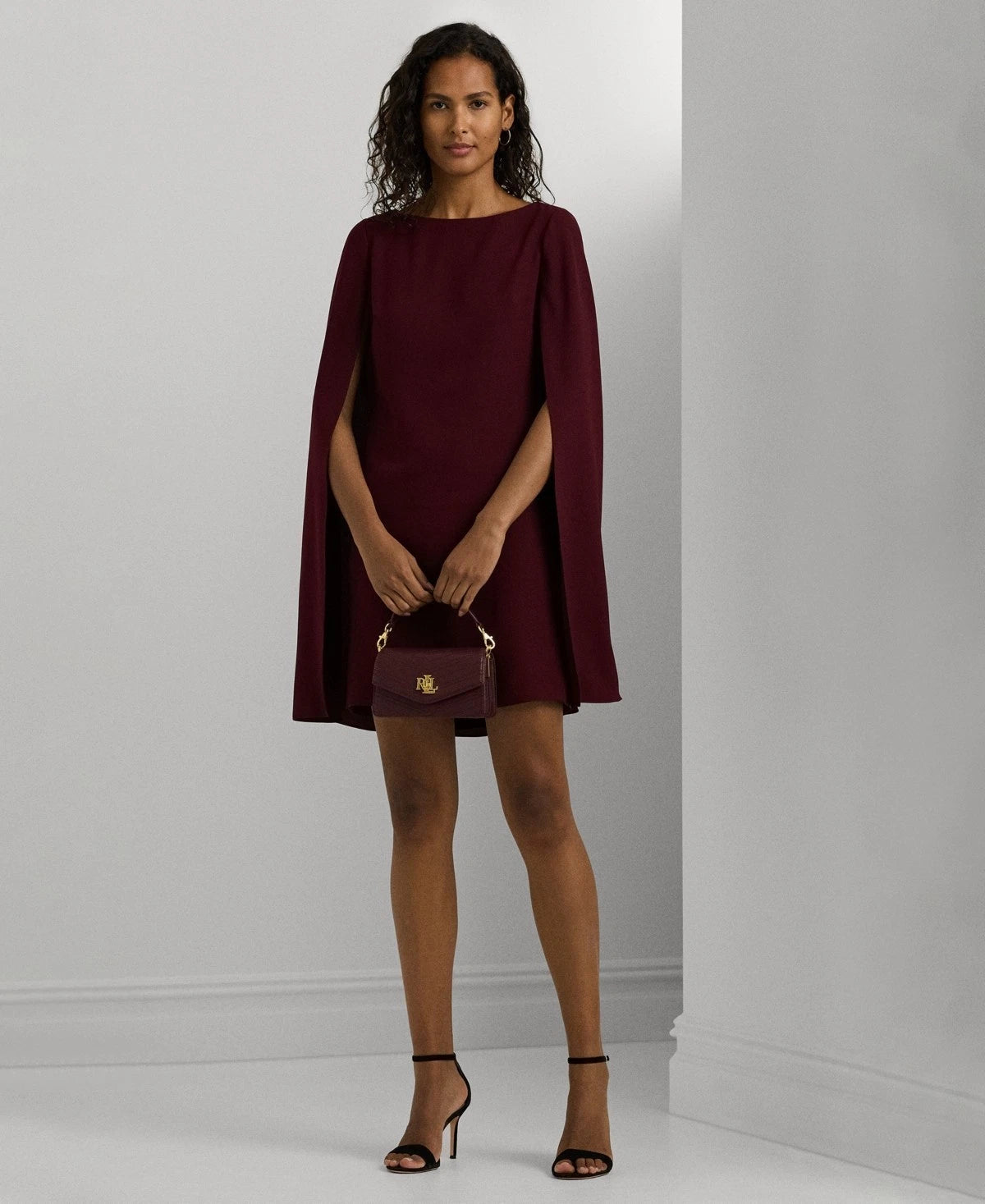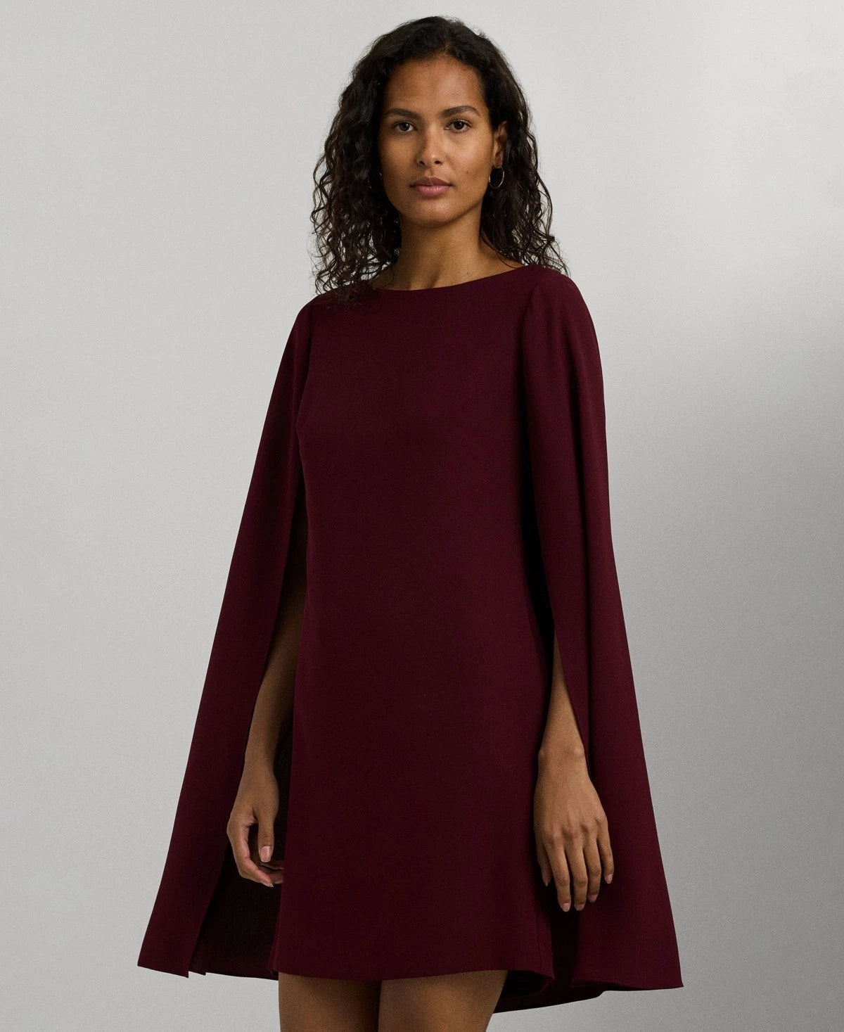 Lauren Ralph Lauren Women's Georgette Cape Dress Burgundy Red Size 6 MSRP $195