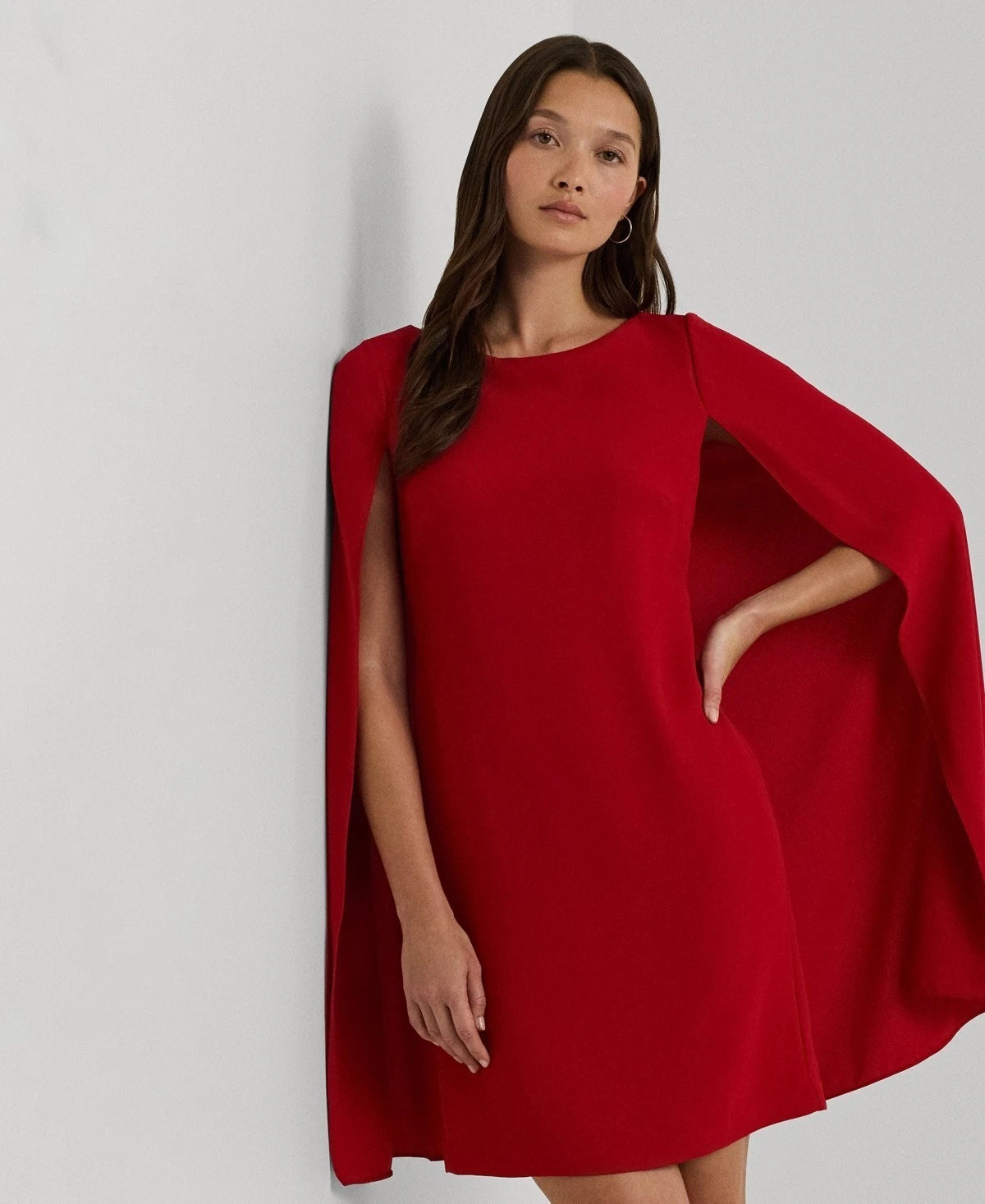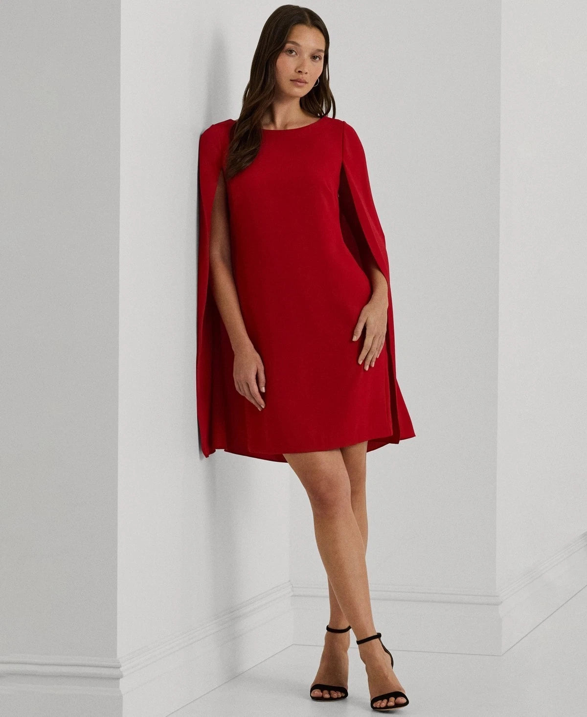 Lauren Ralph Lauren Women's Georgette Cape Dress Red Size 16 MSRP $195