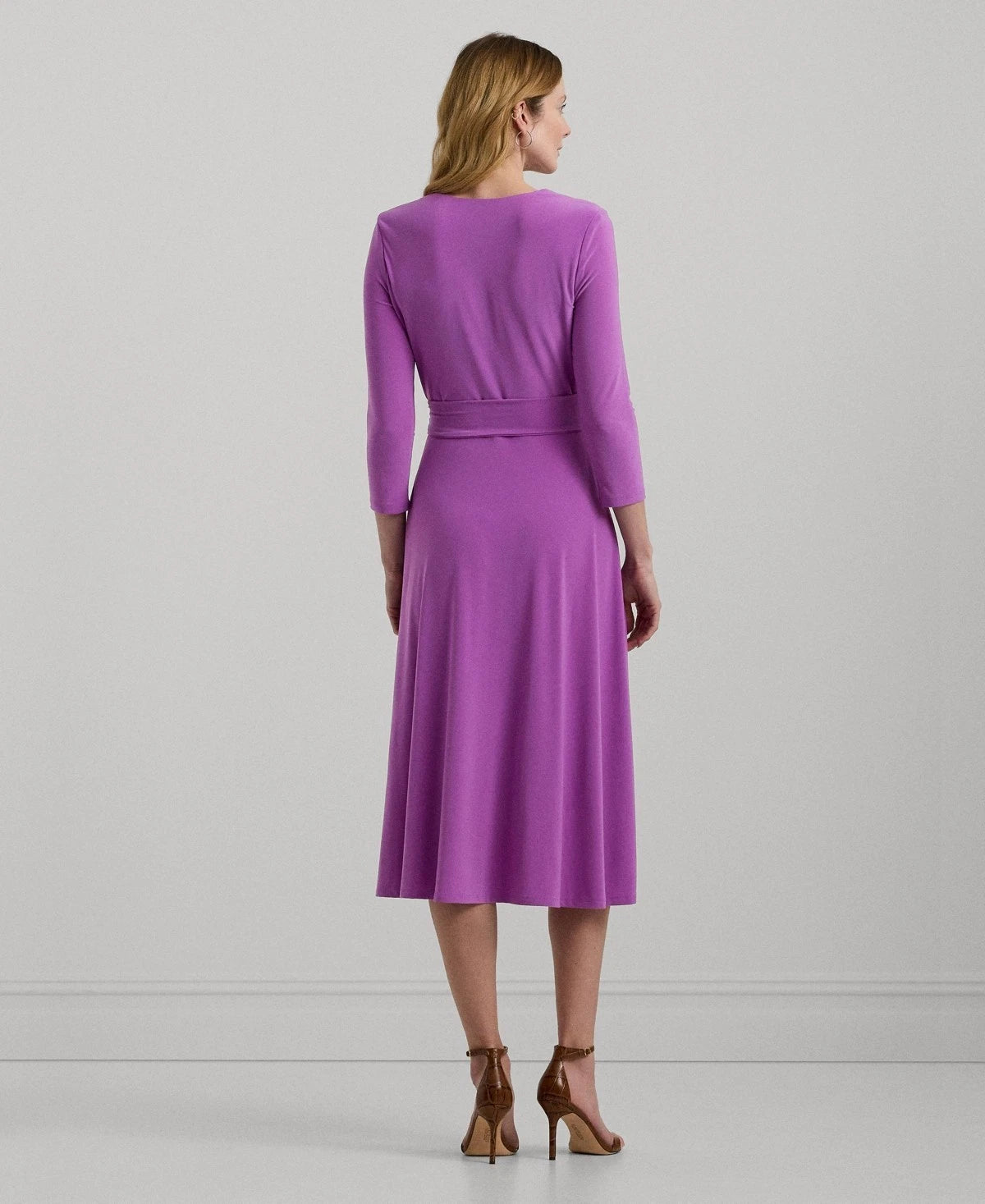 Lauren Ralph Lauren call this the perfect everyday dress, as it hits below the knee and features a flattering surplice neckline. Its jersey construction creates comfort and ease of movement, while a self-tie sash accentuates the natural curves of the waist.