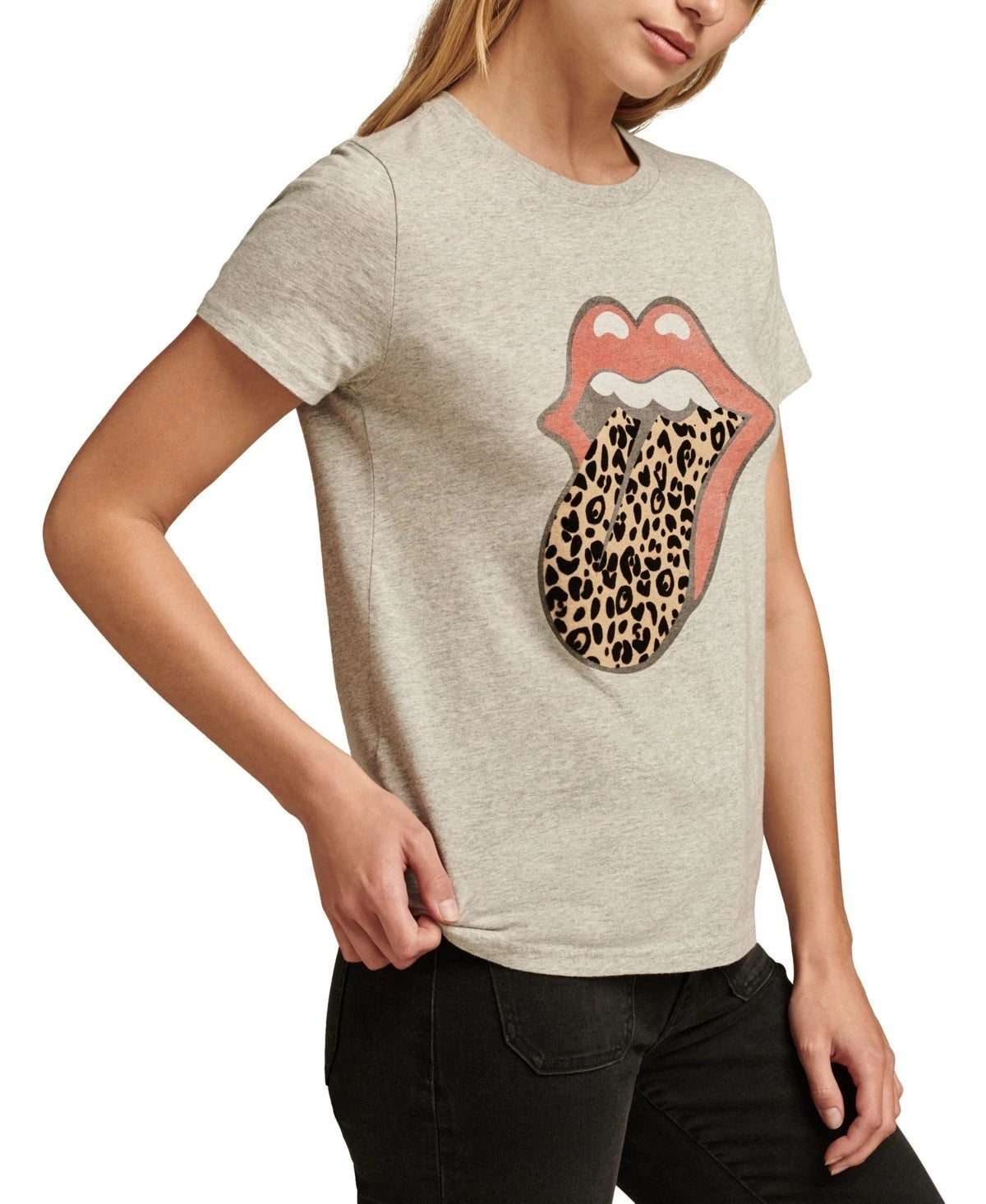 Lucky Brand Rollng Stones Animal Lips Cotton T-Shirt Gray Size XS MSRP $50