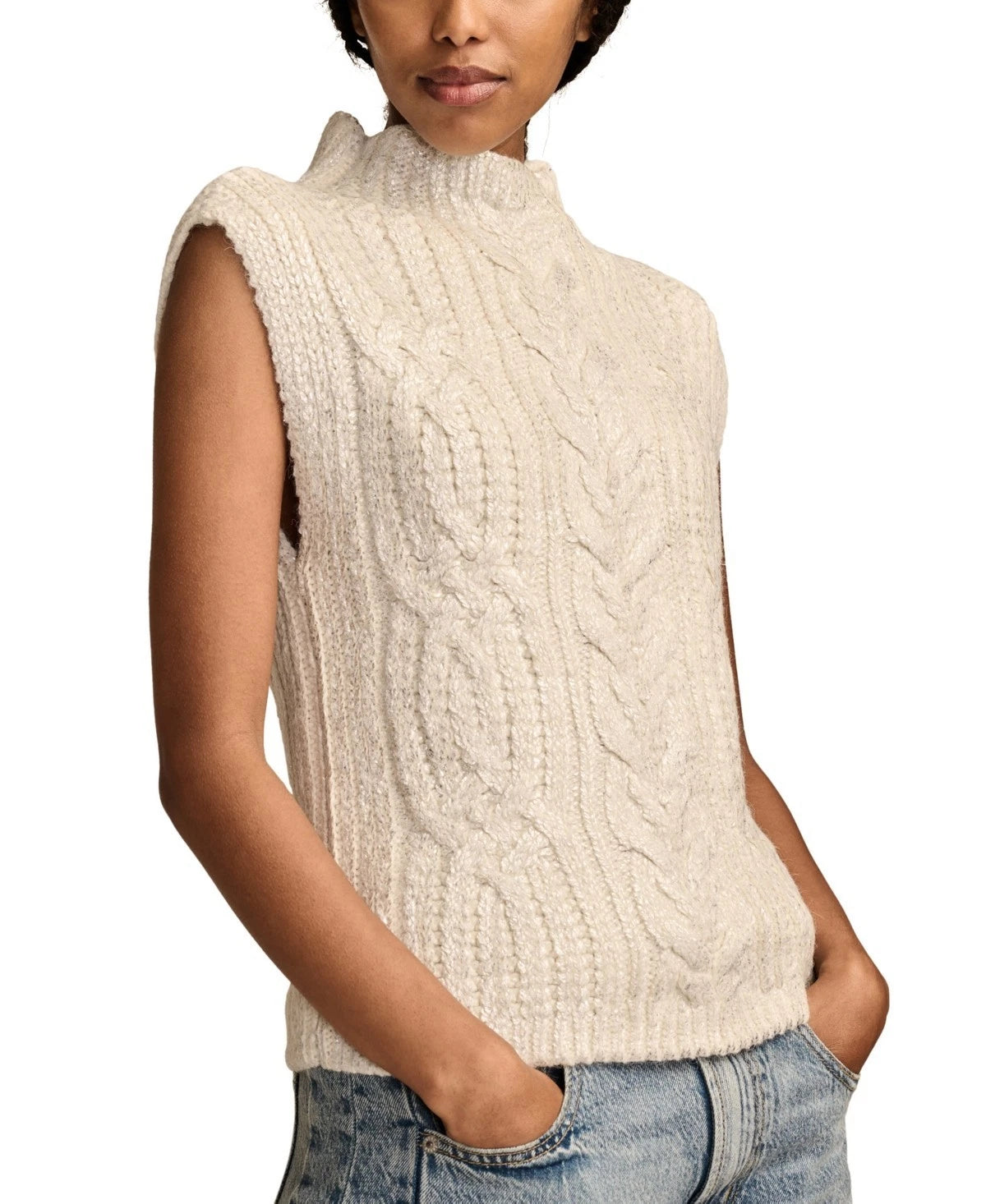 Lucky Brand Women Metallic Cable-Knit Sweater Vest Ivory Cream Size XL MSRP $90