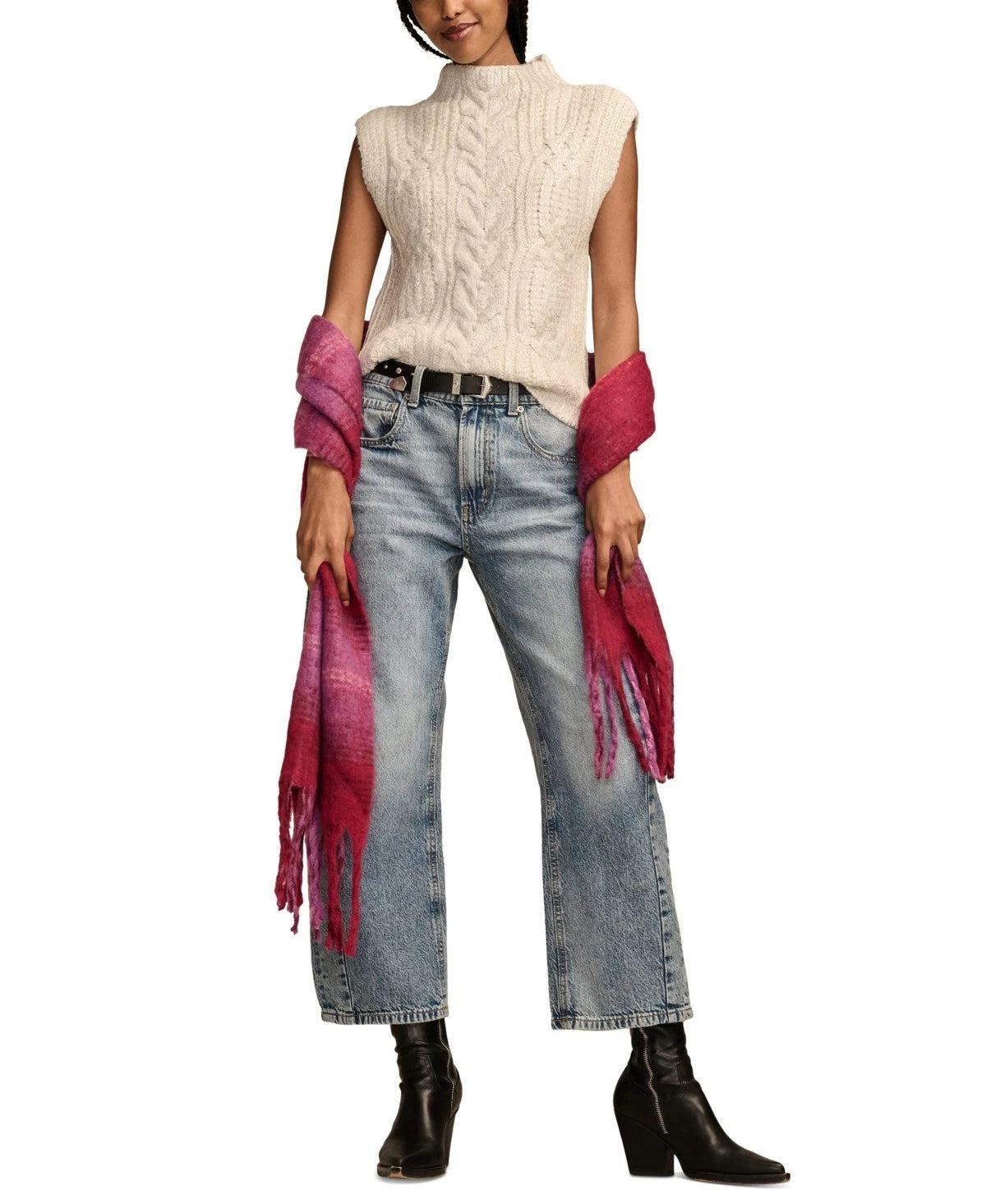 Refresh your cool-weather wardrobe with this sweater vest from Lucky Brand. Made of cozy knit fabric with a metallic finish, this sweater vest looks great worn on its own or layered over long sleeves for added warmth. From work to the weekend, this sweater vest is a go-to choice for Monday through Sunday.