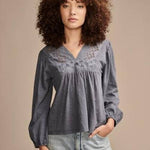 Lucky Brand's perfectly relaxed plaid shirt dials up the style with smocked shoulders and gently puffed sleeves.