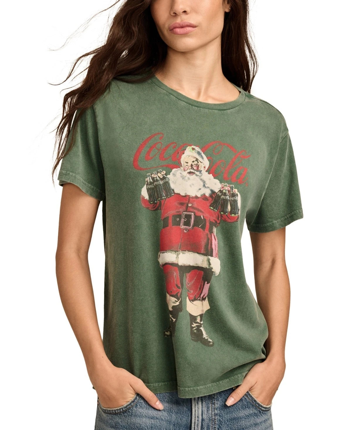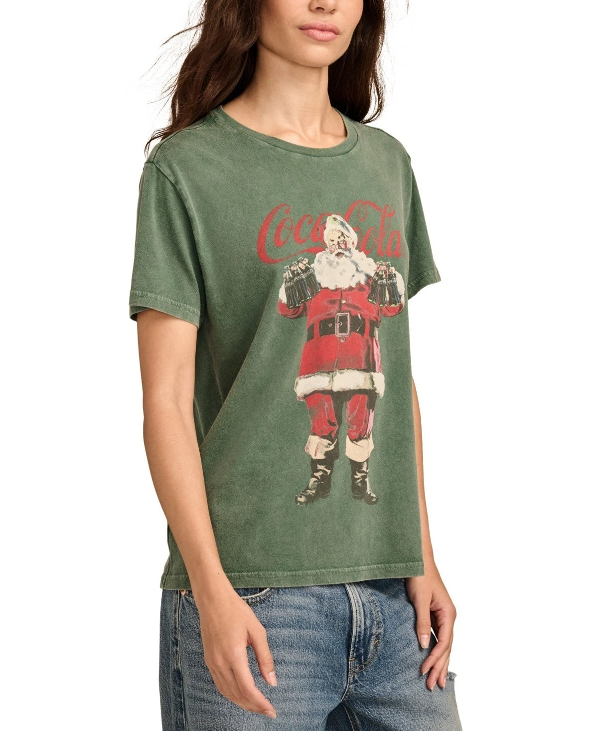 Lucky Brand Women's Santa Coca Cola Cotton Crewneck T-Shirt Green Size XL