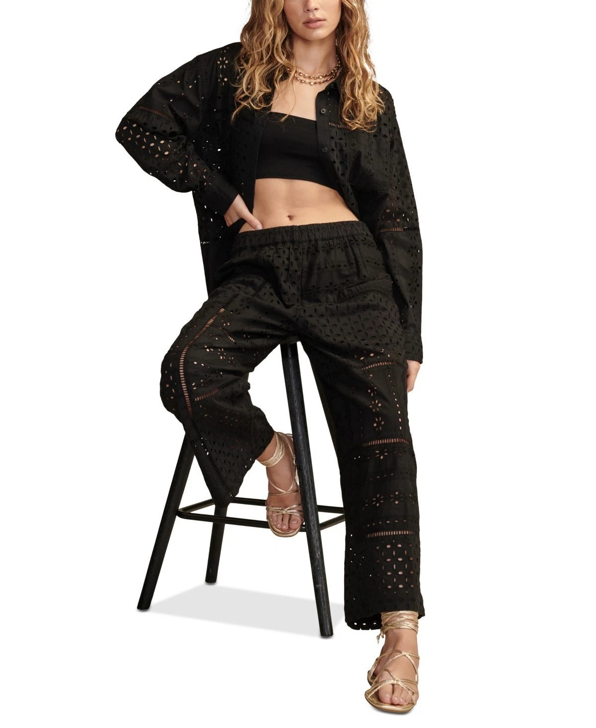 Lucky Brand Women's Schiffli Eyelet Matchback Pants Black Size XL MSRP $139