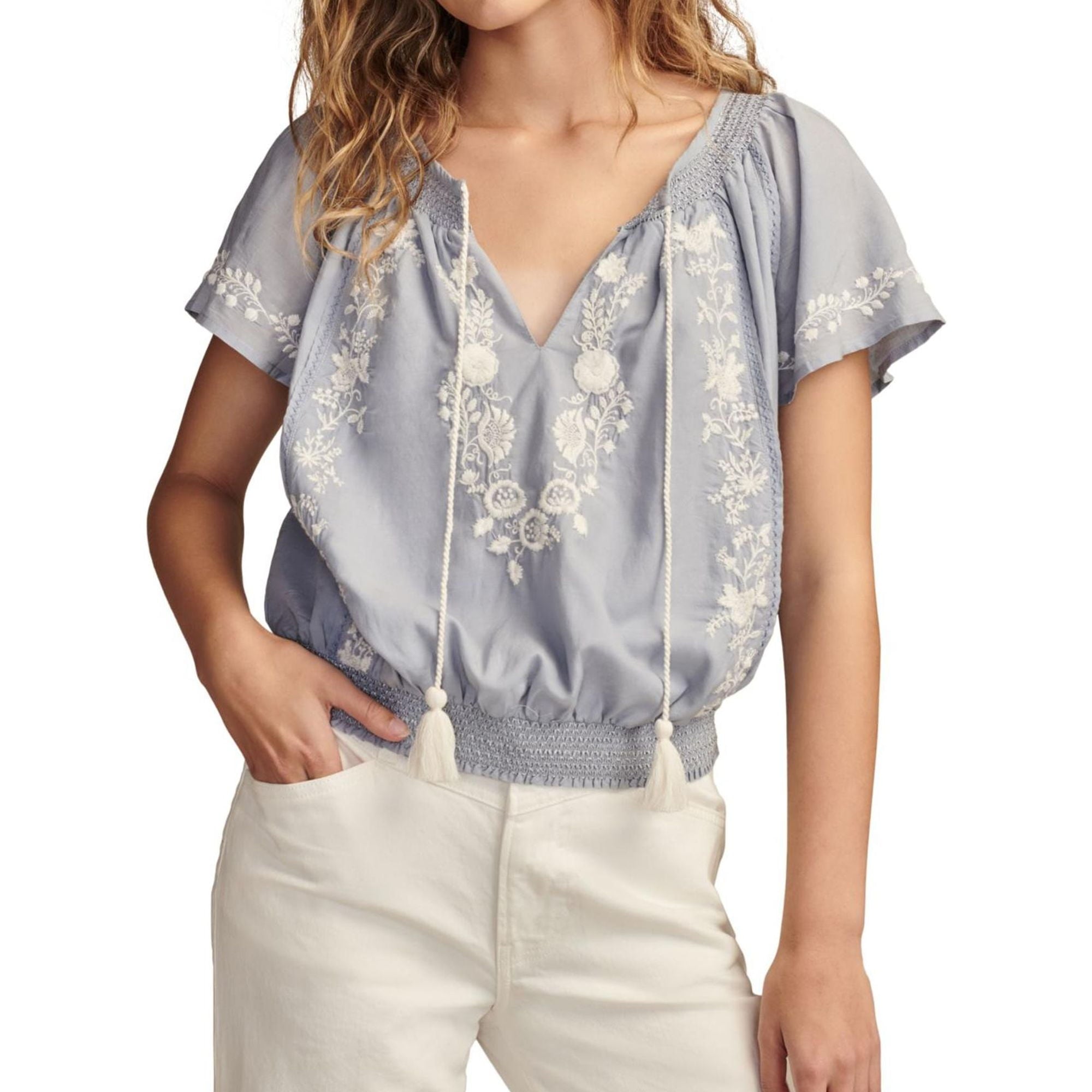 Lucky Brand Womens Tassle Tie Neck Peasant Blouse, Blue, Size S MSRP $90