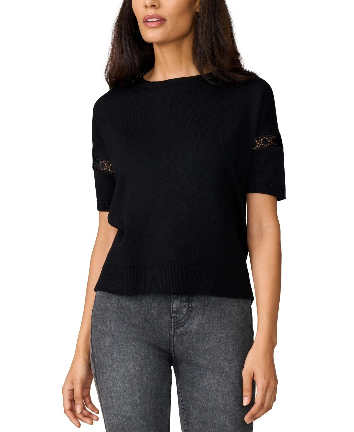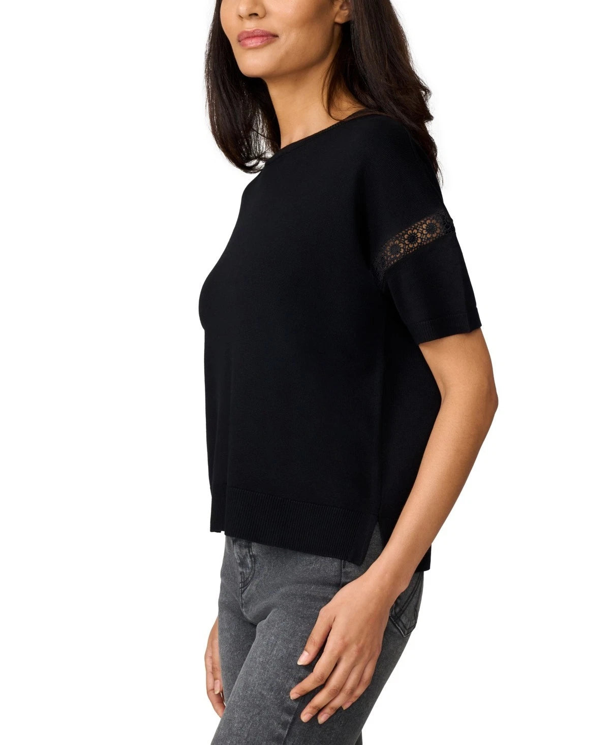 Melissa Paige Women's Lace-Inset Short-Sleeve Sweater Black Size M