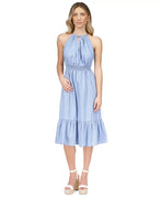 Catch the light with every step in this metallic fit & flare dress from MICHAEL Michael Kors, a long-sleeve pick with dimension-adding pleats throughout.