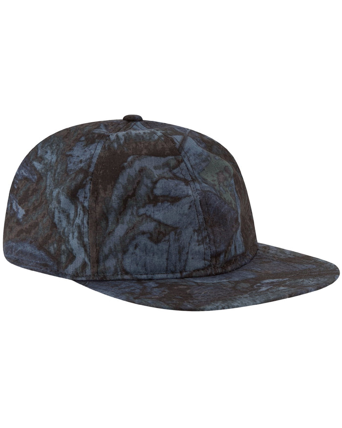 Soft tonal camo lends depth and interest to a cool flat-brim cap cut from lightweight cotton. Adjustable back strap with snap closure