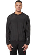 * Crewneck; snaps at shoulders; elastic waist with drawstring; logo at front