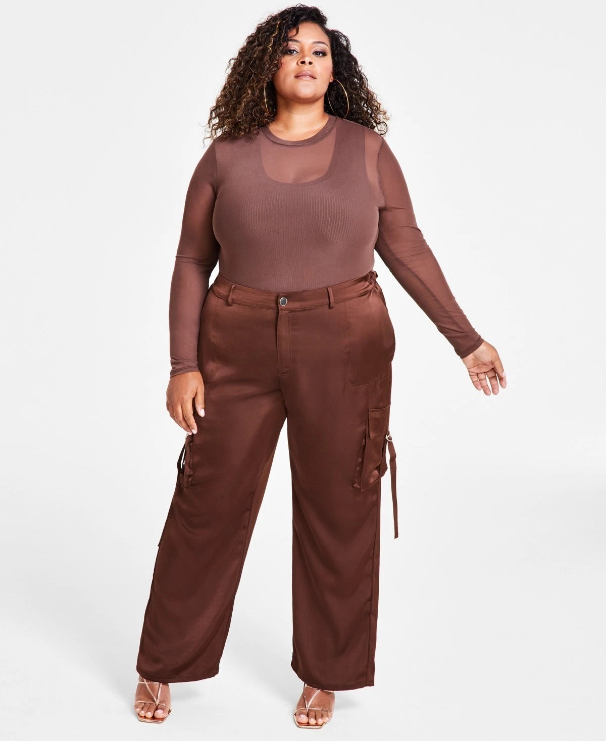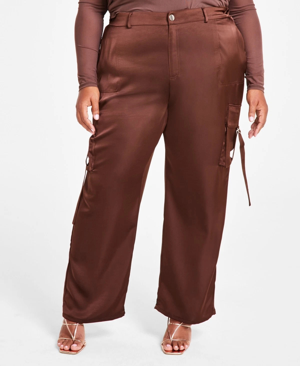 Nina Parker Trendy Plus Size 22W Straight-Leg Cargo Pants Brown MSRP $99