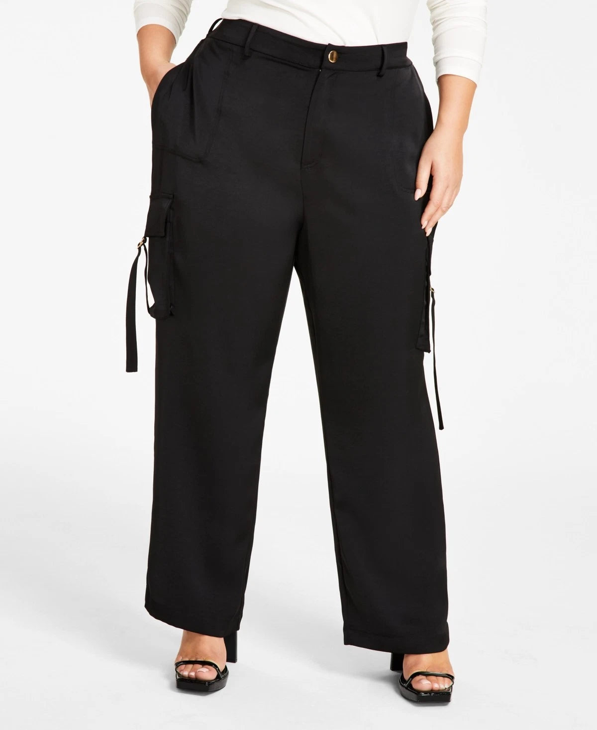 Nina Parker Trendy Plus Size 24W Straight-Leg Cargo Pants Black MSRP $99