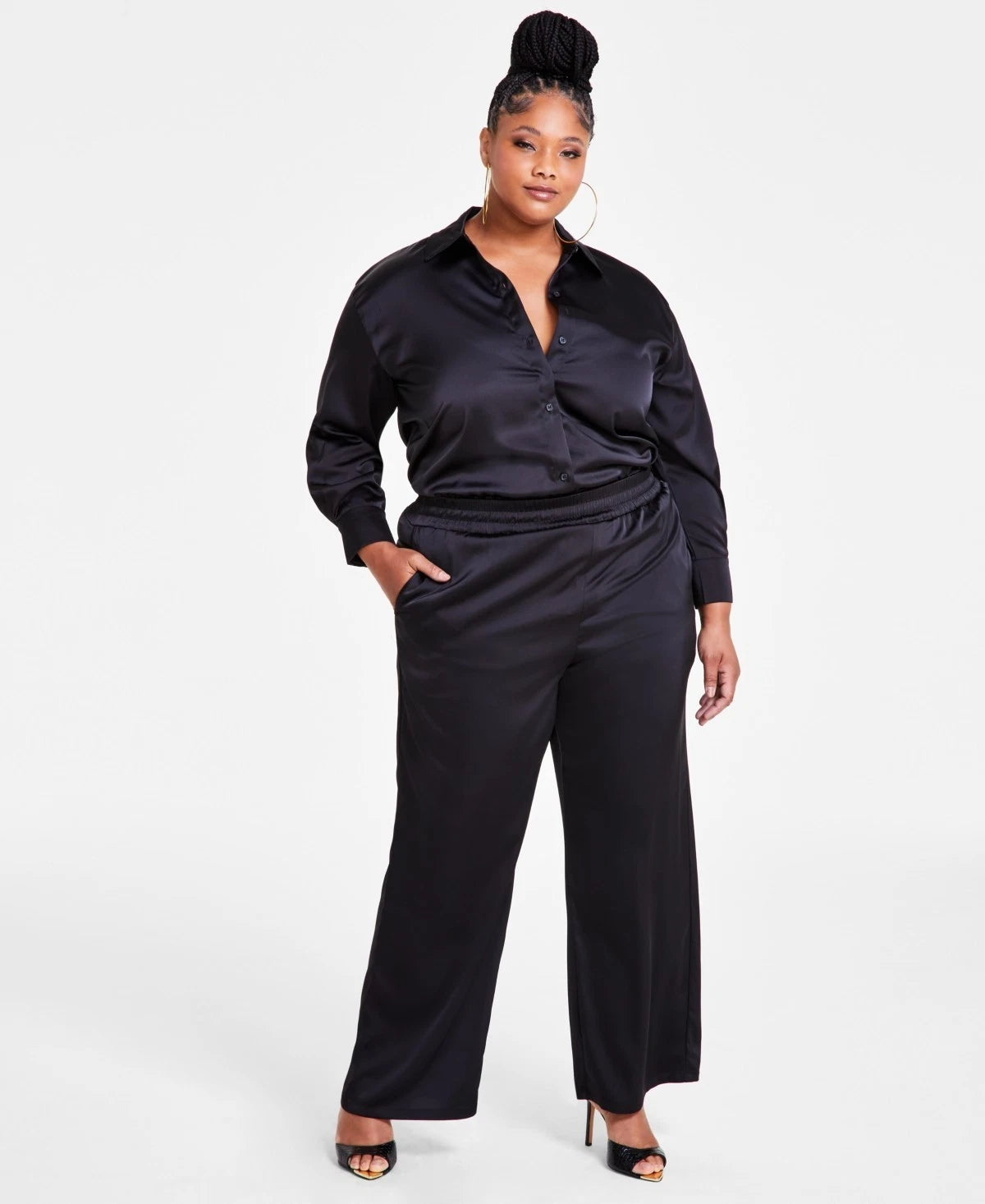 Nina Parker Trendy Plus Size 2X Satin Wide-Leg Pants Black MSRP $89