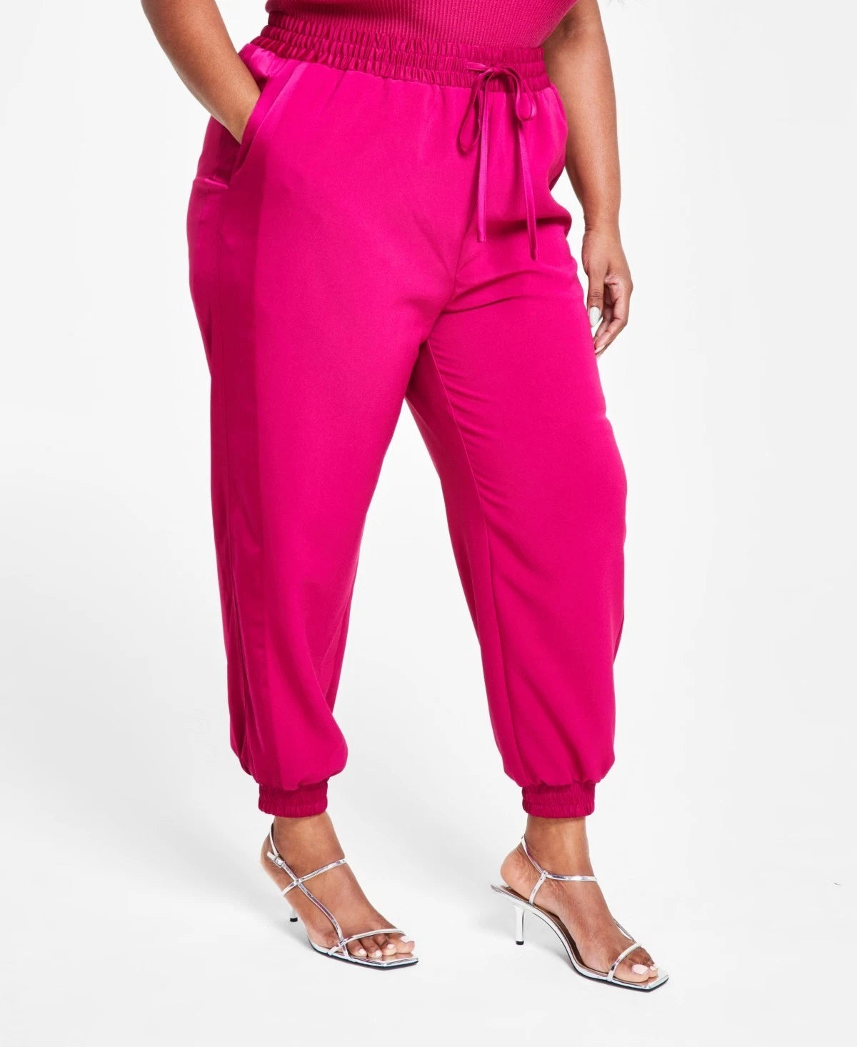 Stay effortlessly stylish with these trendy plus size satin joggers from Nina Parker, perfect for combining comfort and chic in one sleek look.