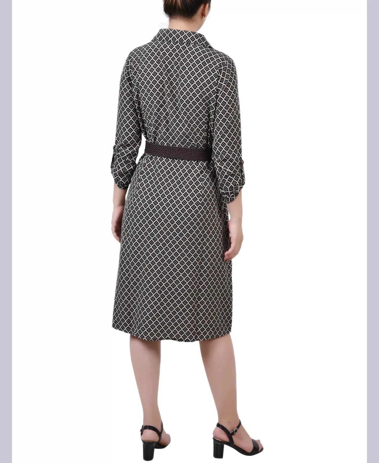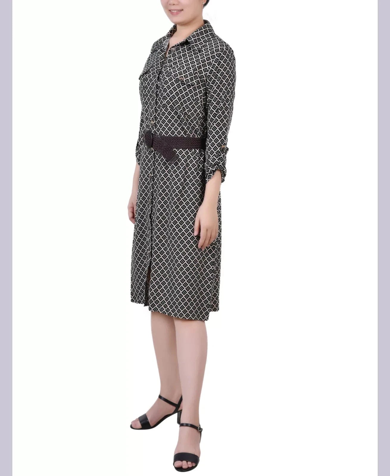 NY Collection Petite 3/4 Roll Tab Sleeve Shirtdress Black Size PXL