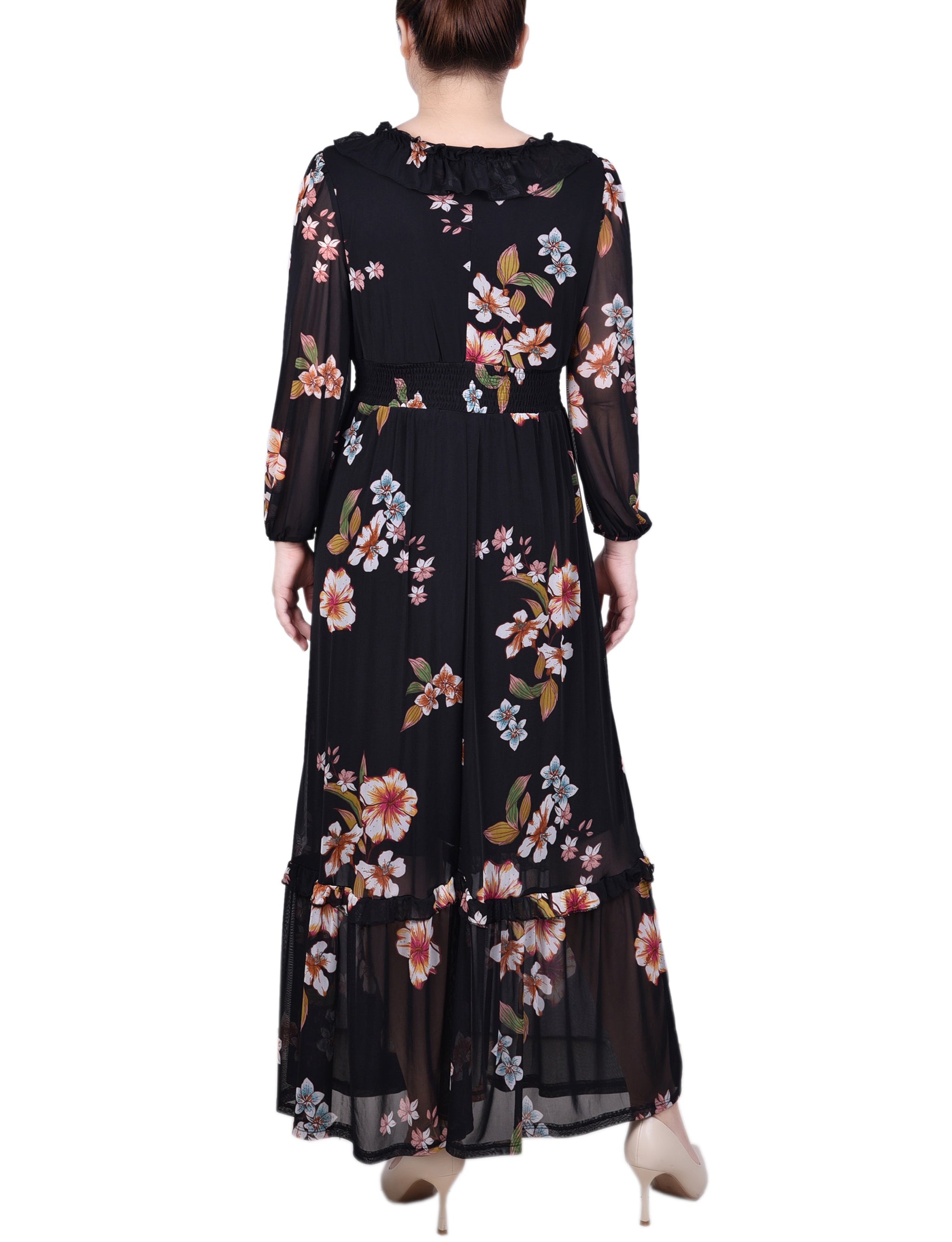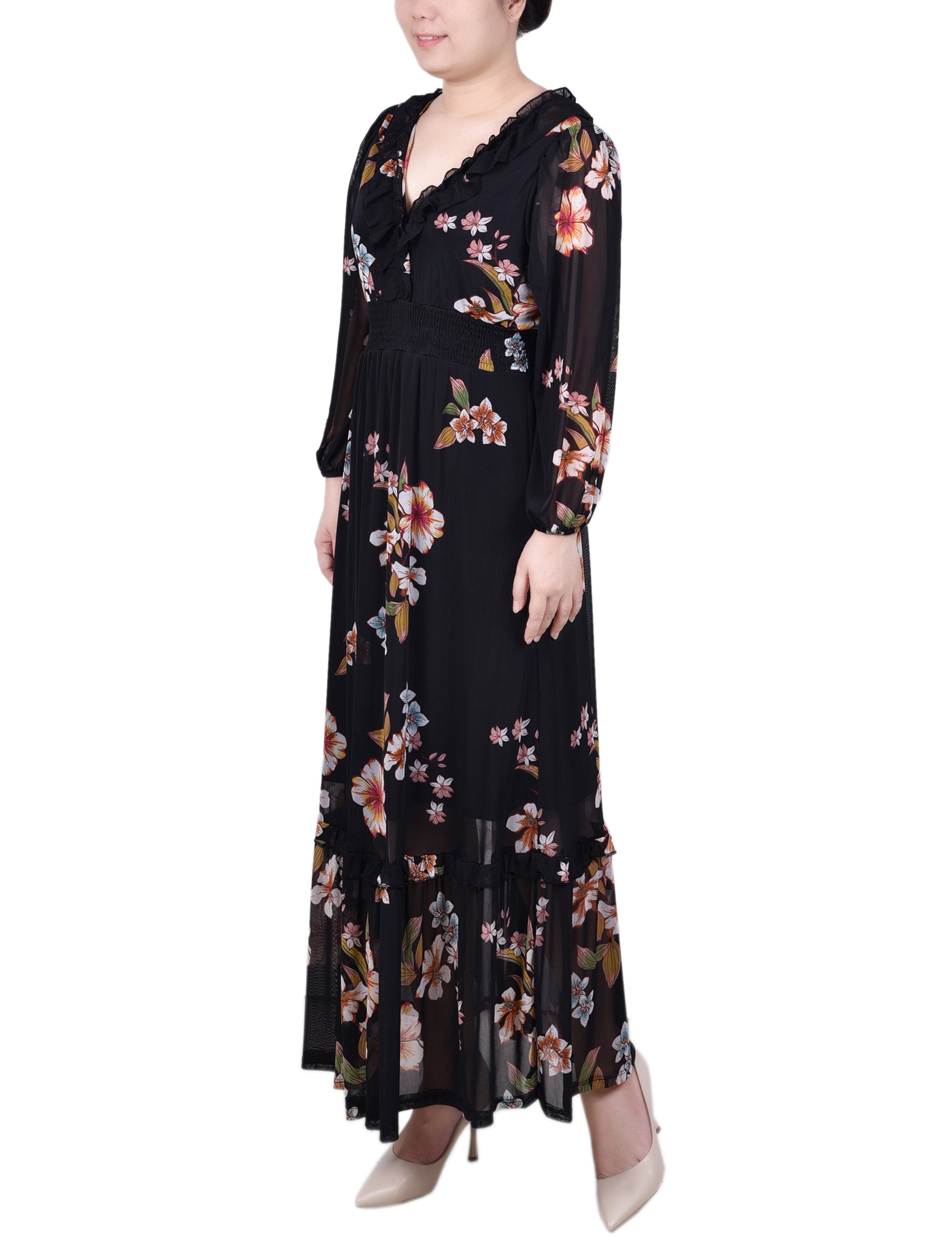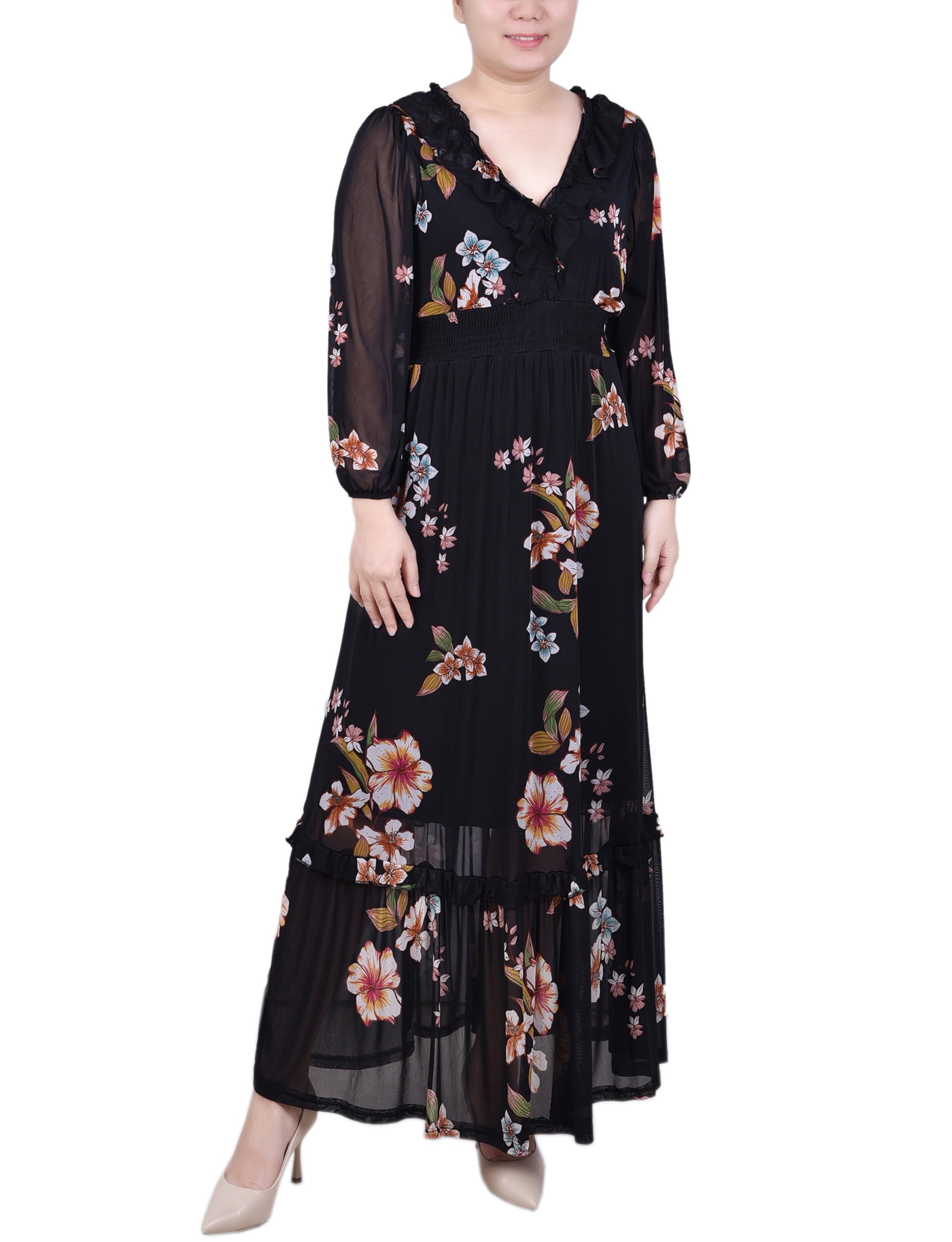 NY Collection Petite Long Sleeve Mesh Maxi Dress Black Size PS