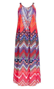 NY Collection Petite Printed Maxi Skirt with Sash Waist Tie Wine Red Size PL