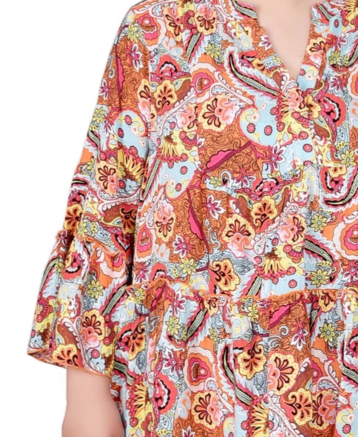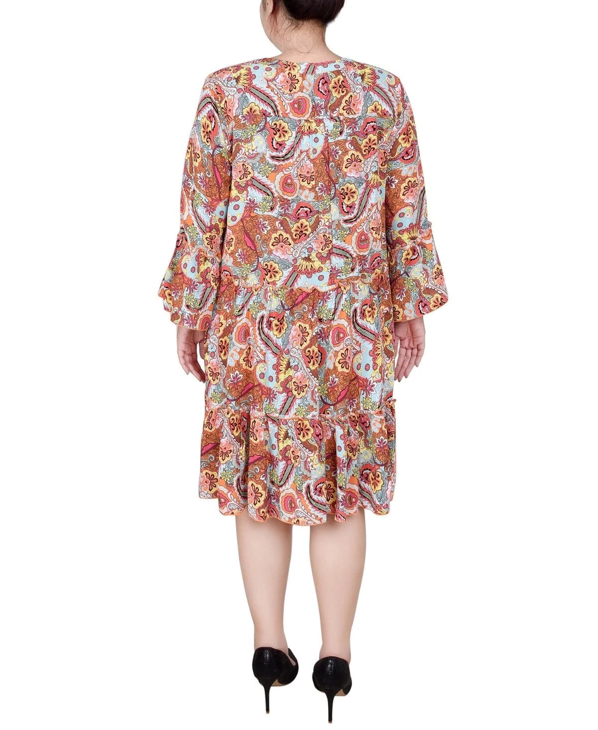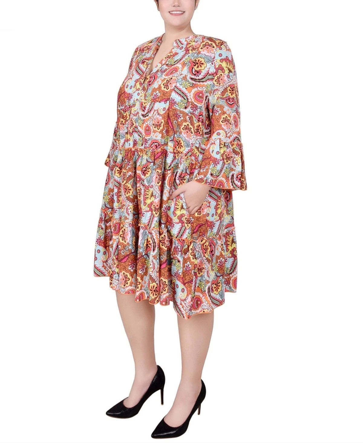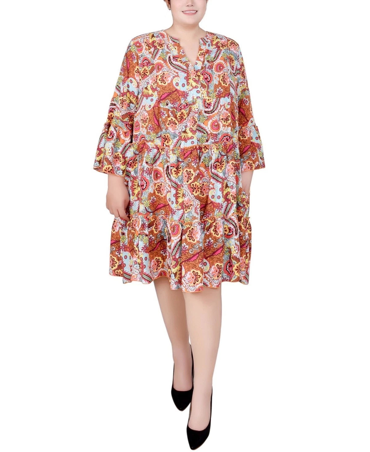 NY Collection Plus Size 3X 3/4 Sleeve Tiered Dress Orange MSRP $60